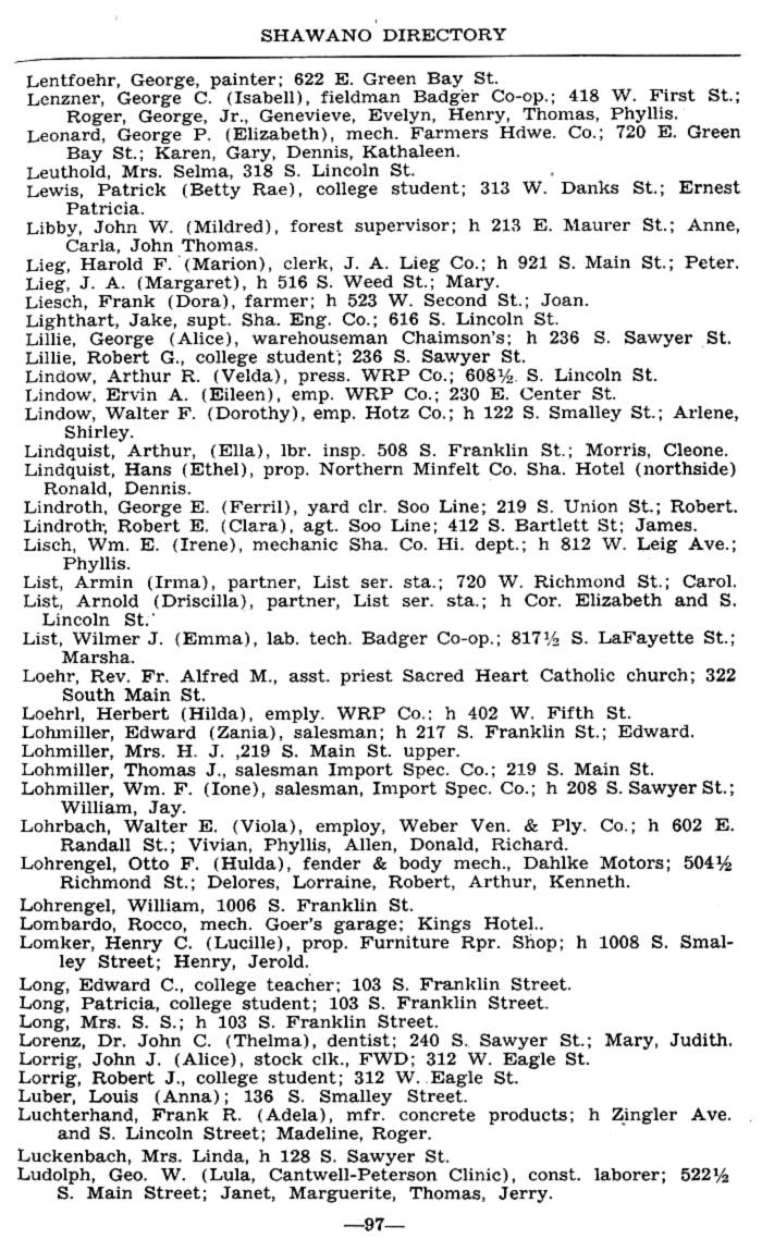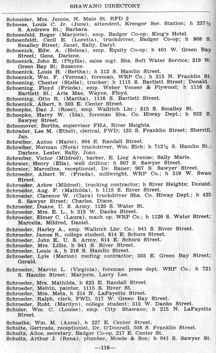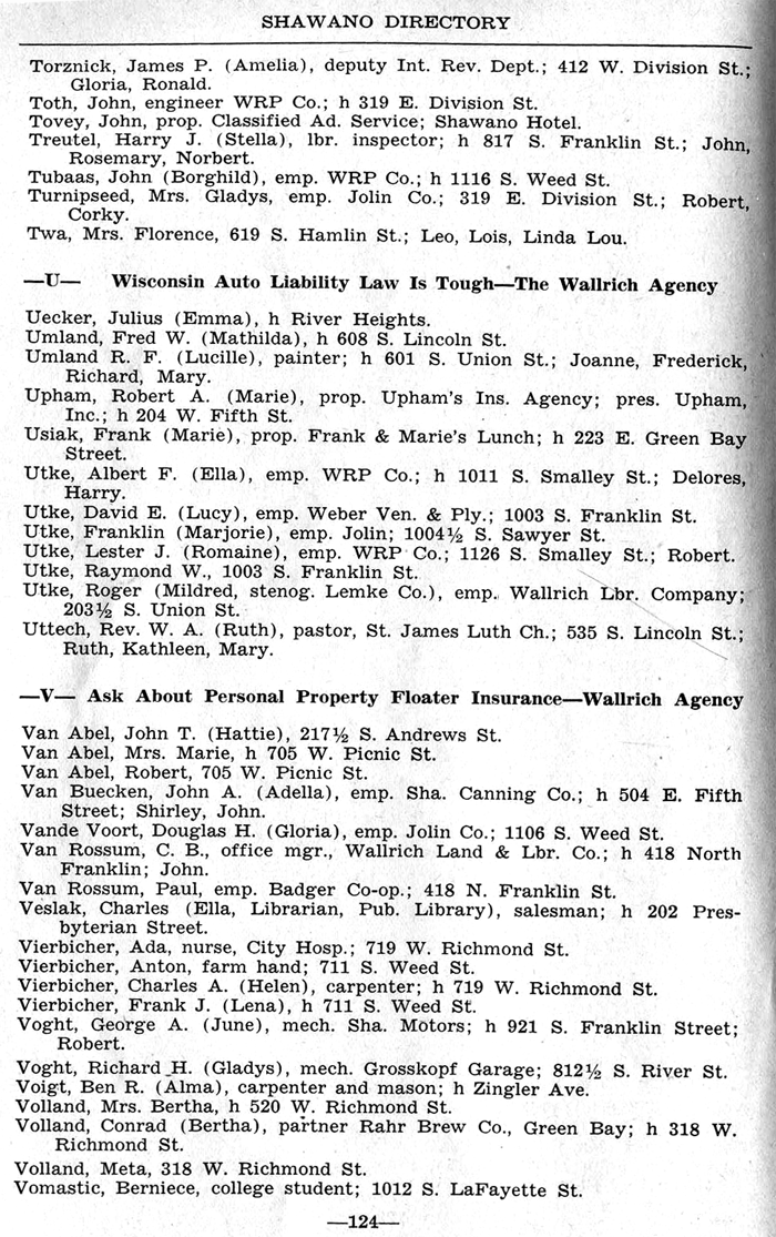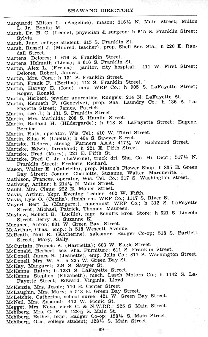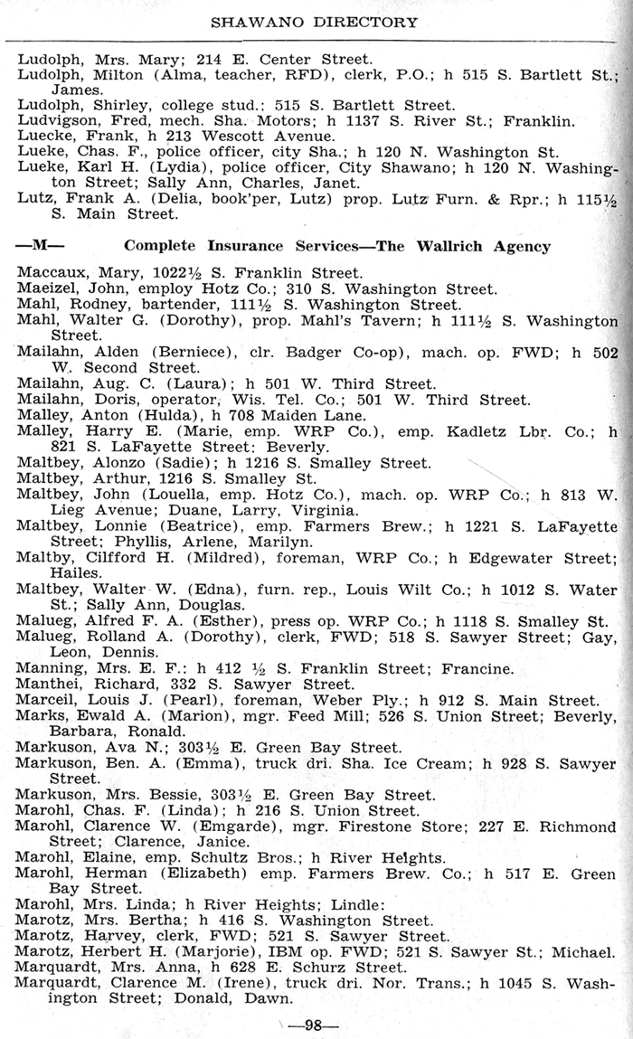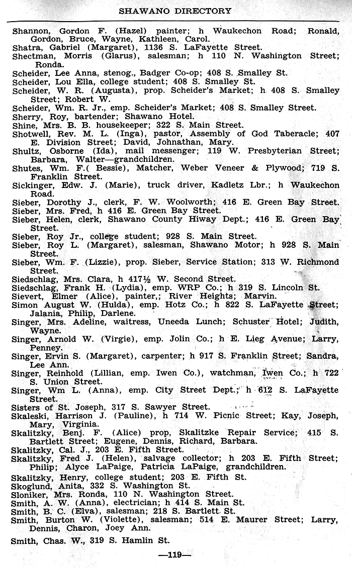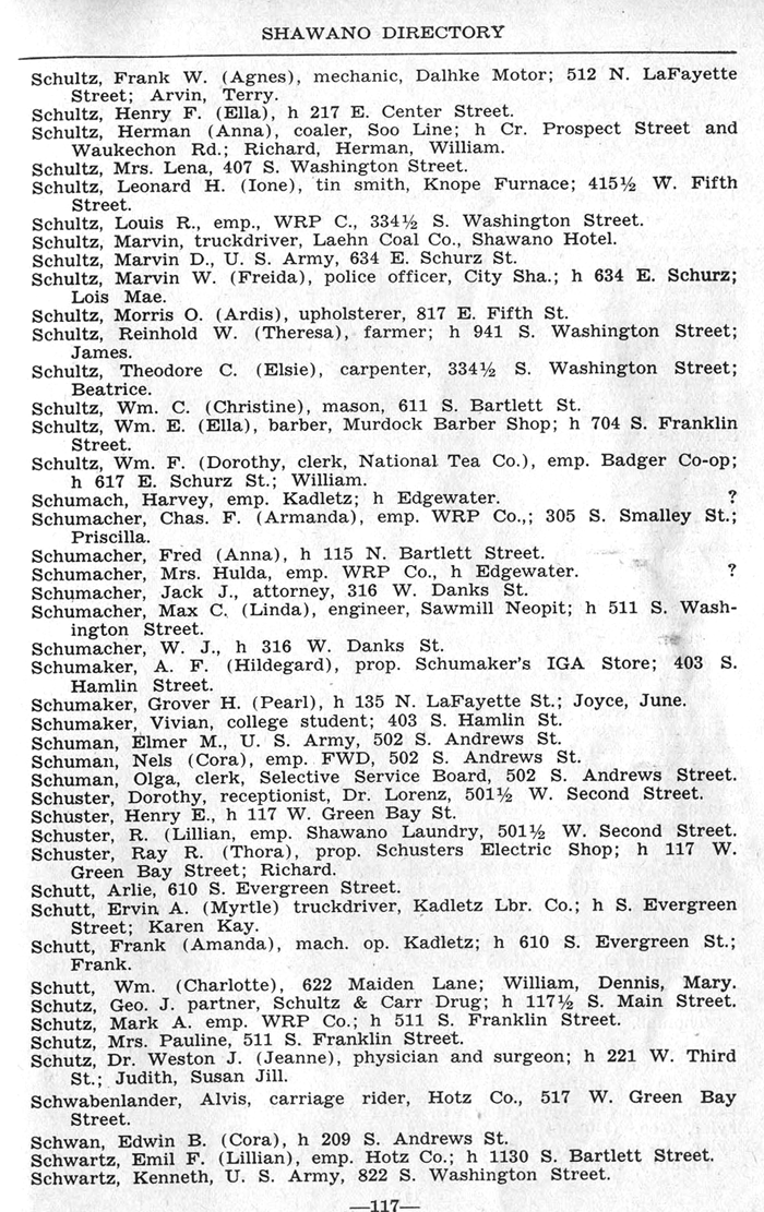 ALPHABETICAL LISTING OF SHAWANO