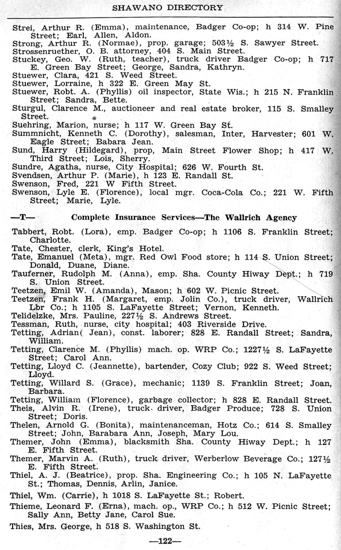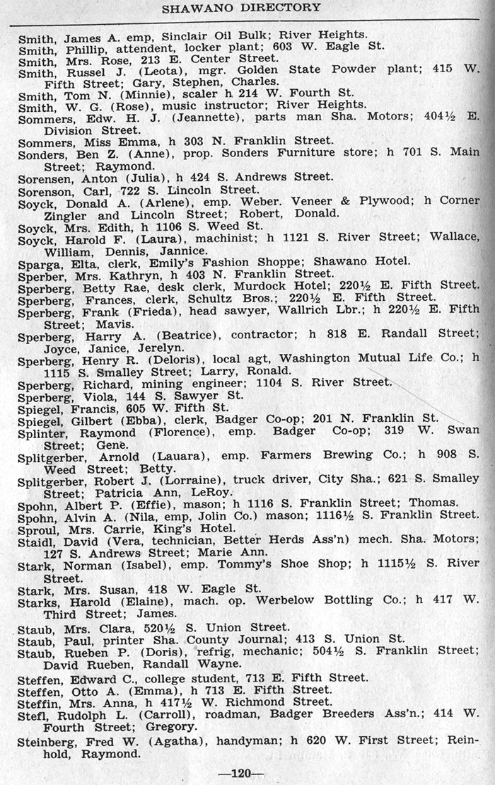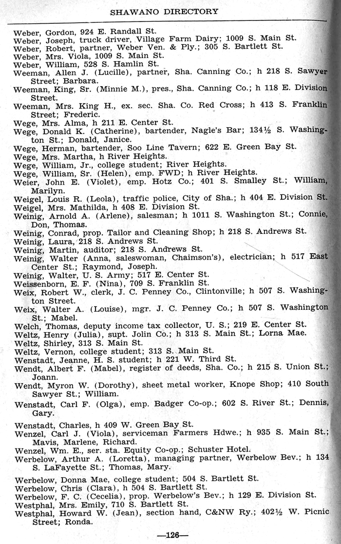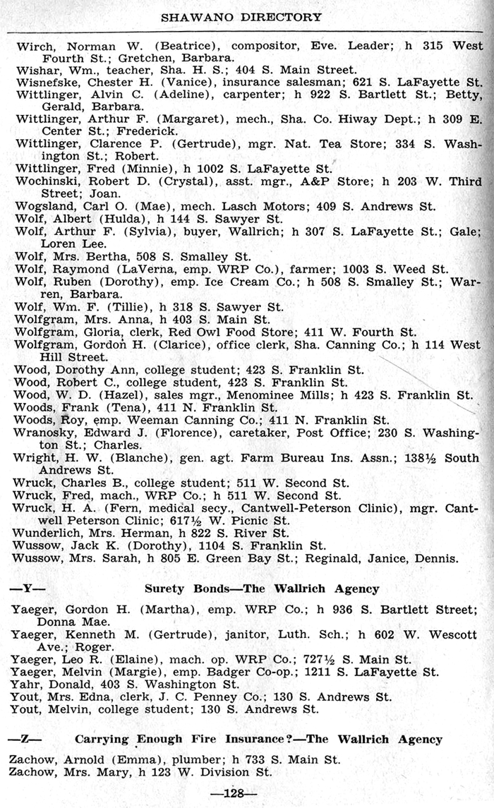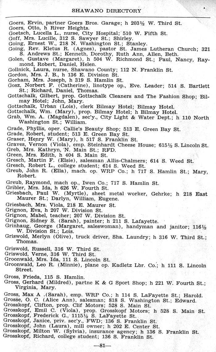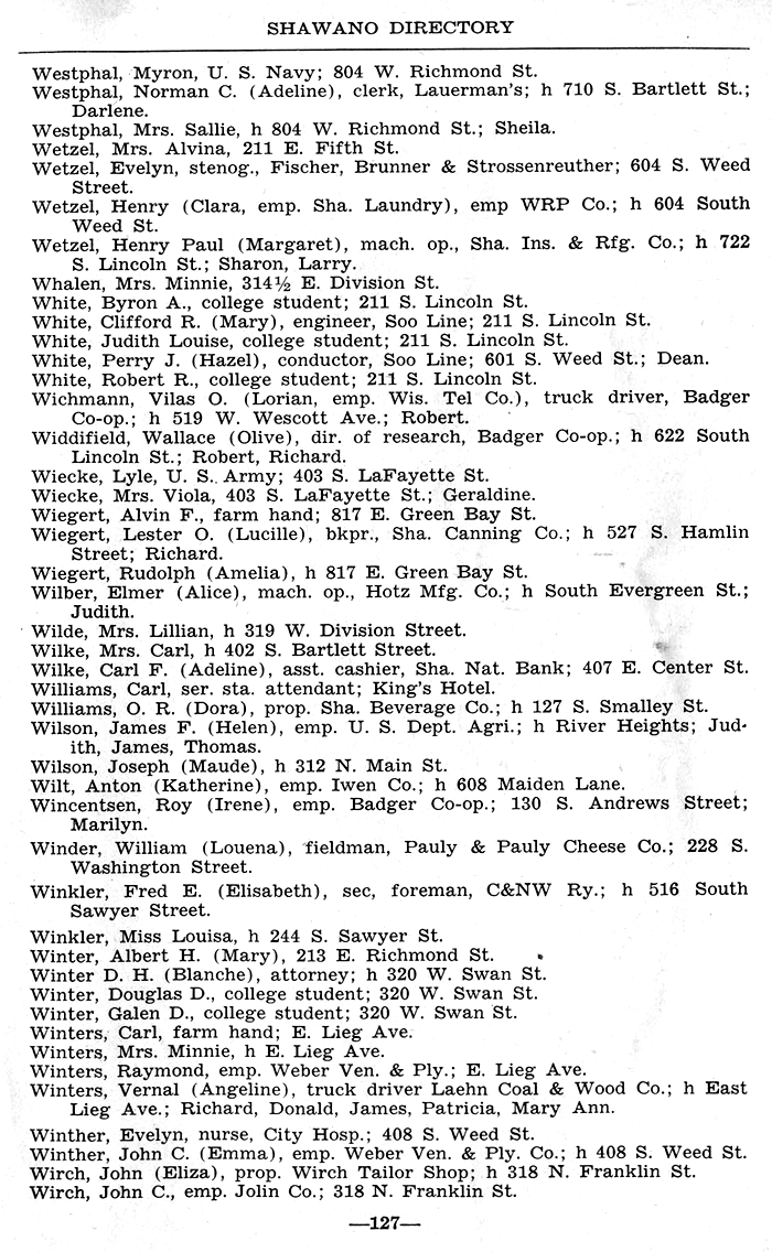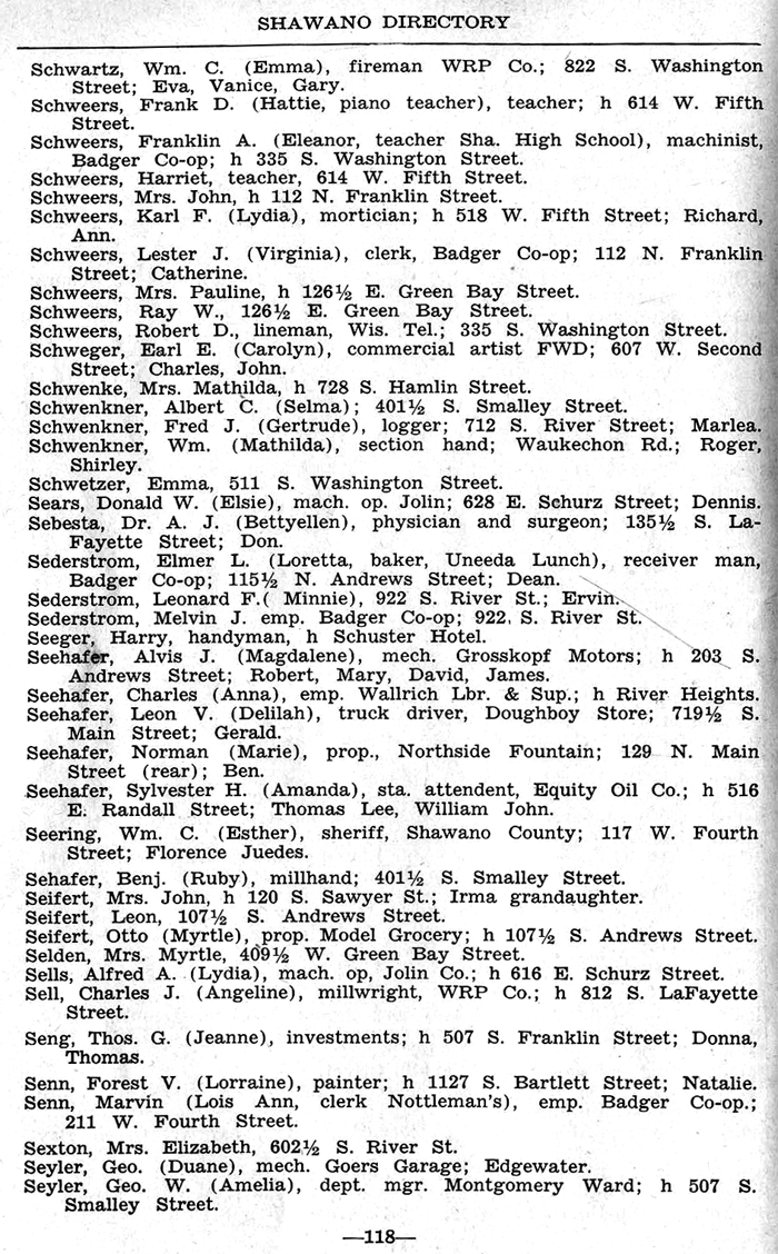 ALPHABETICAL LISTING OF SHAWANO