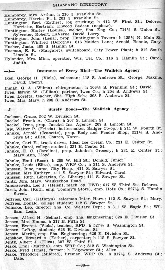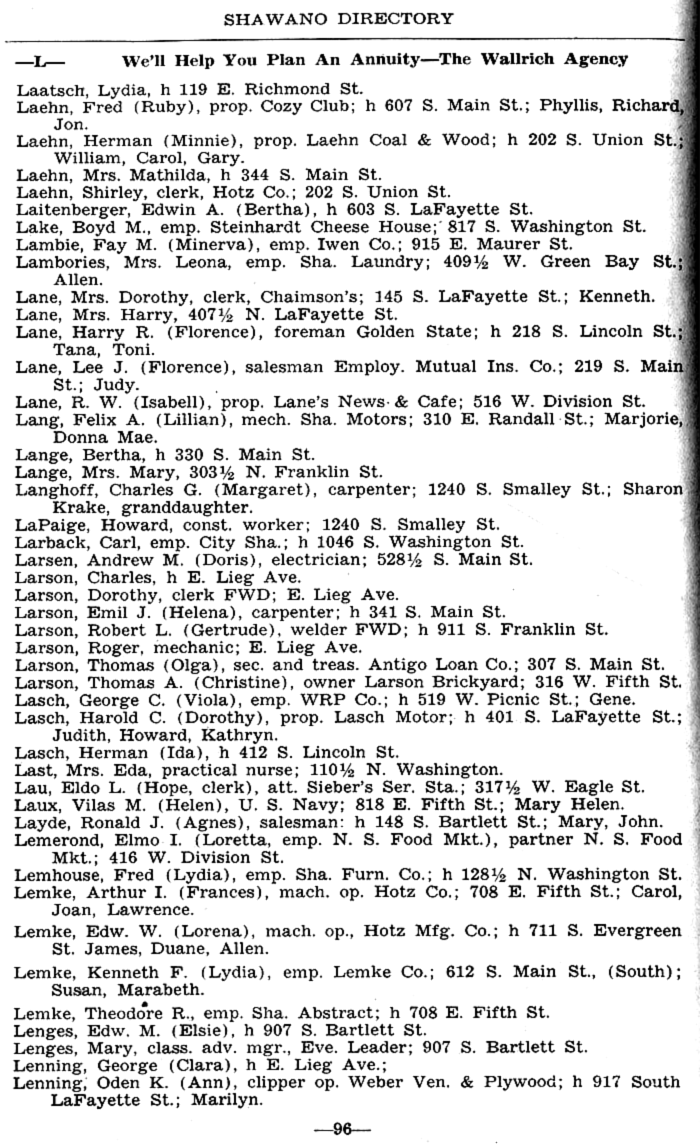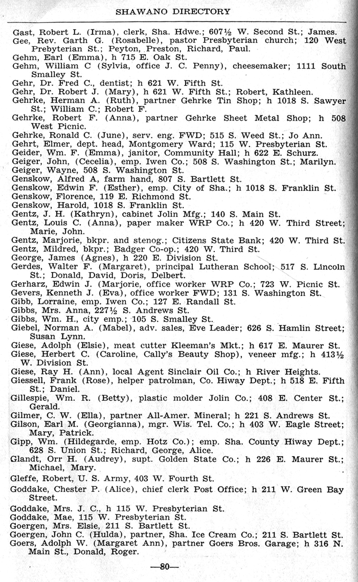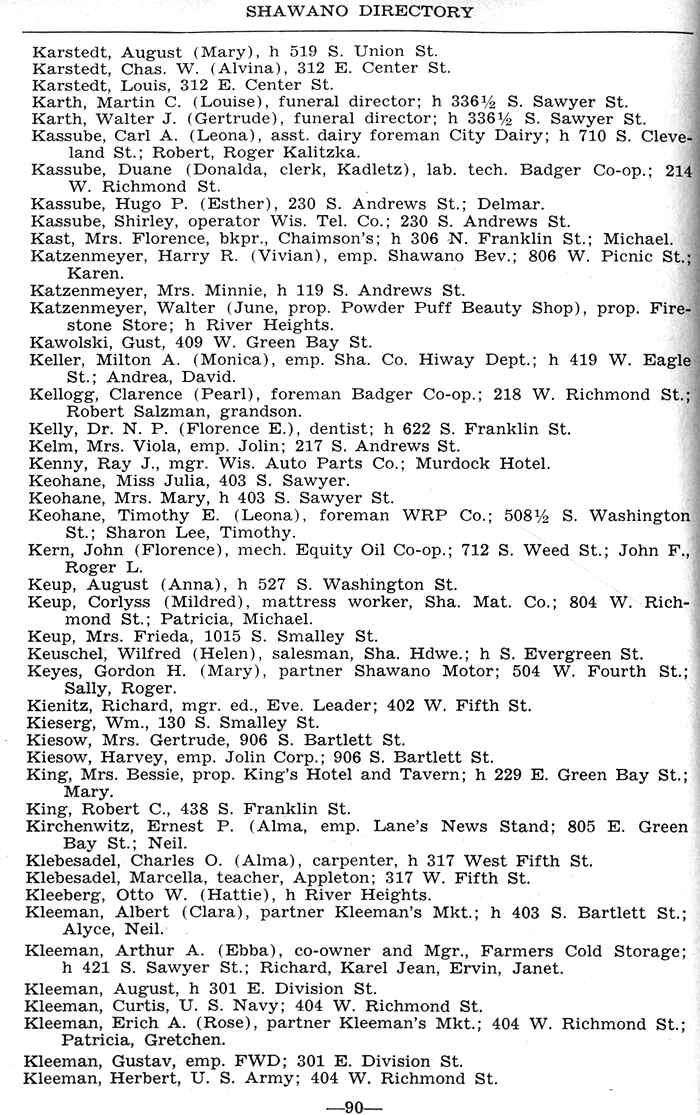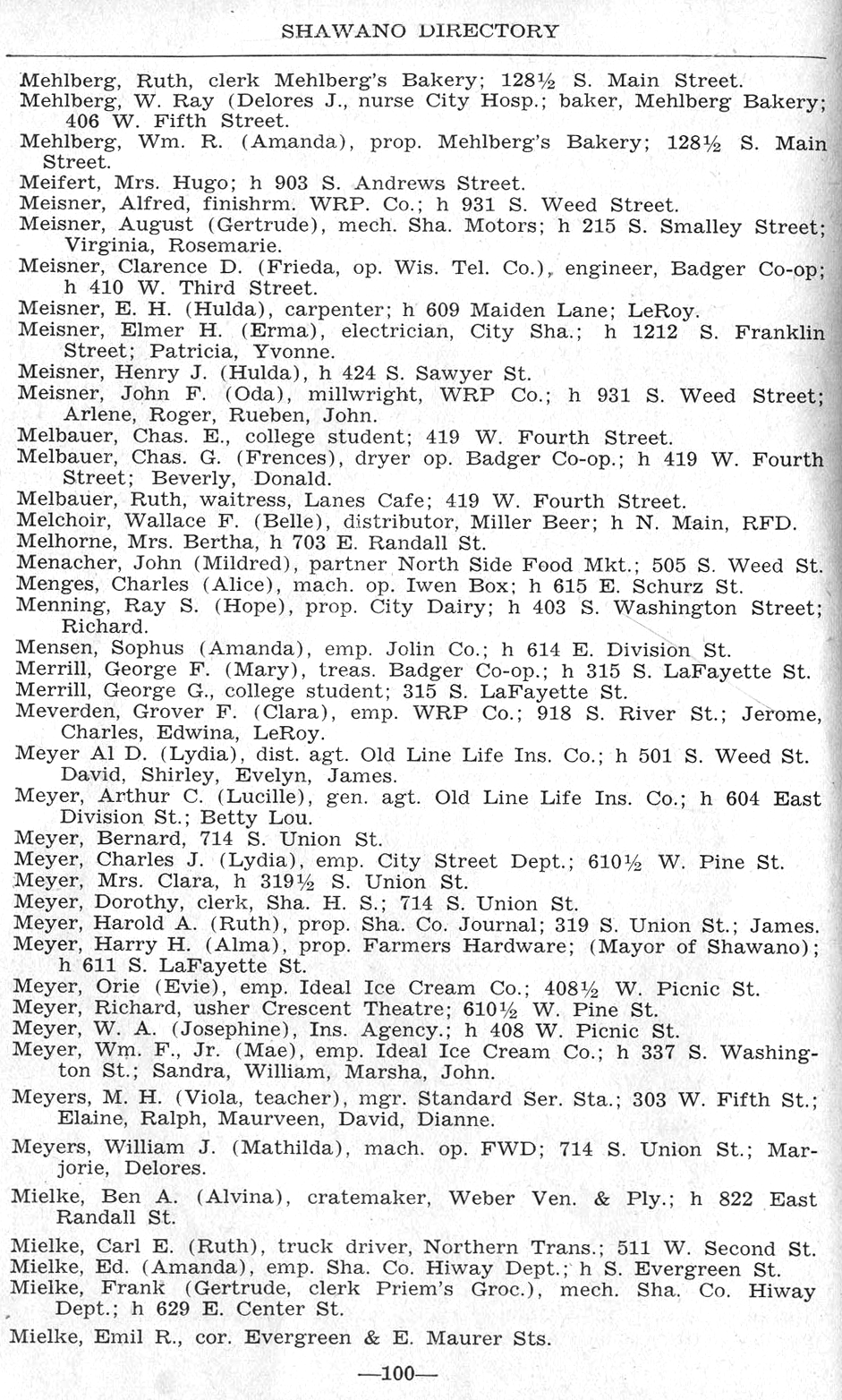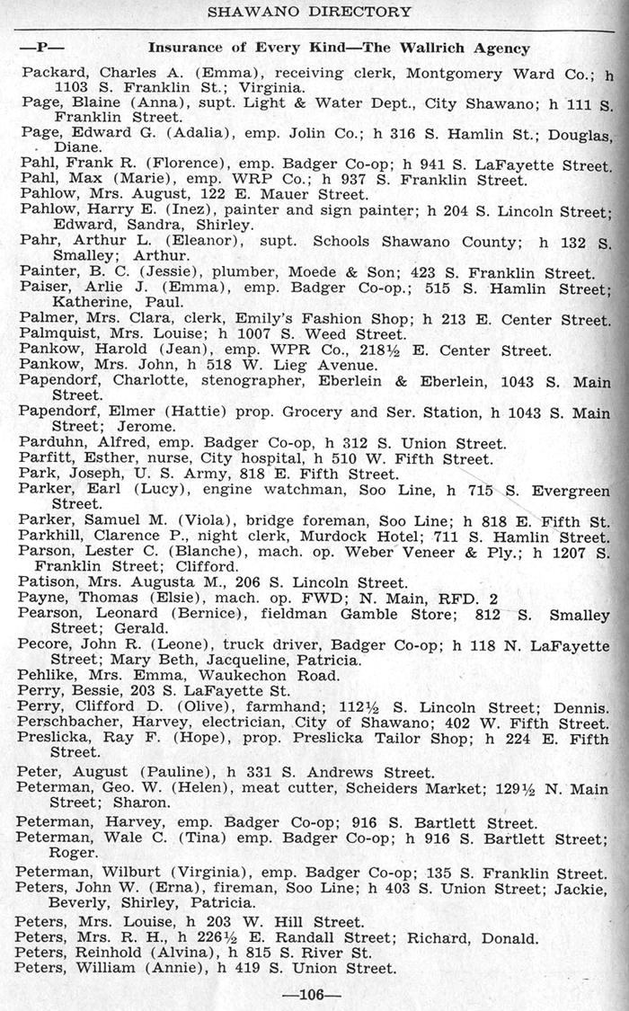 ALPHABETICAL LISTING OF SHAWANO