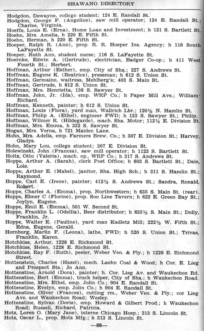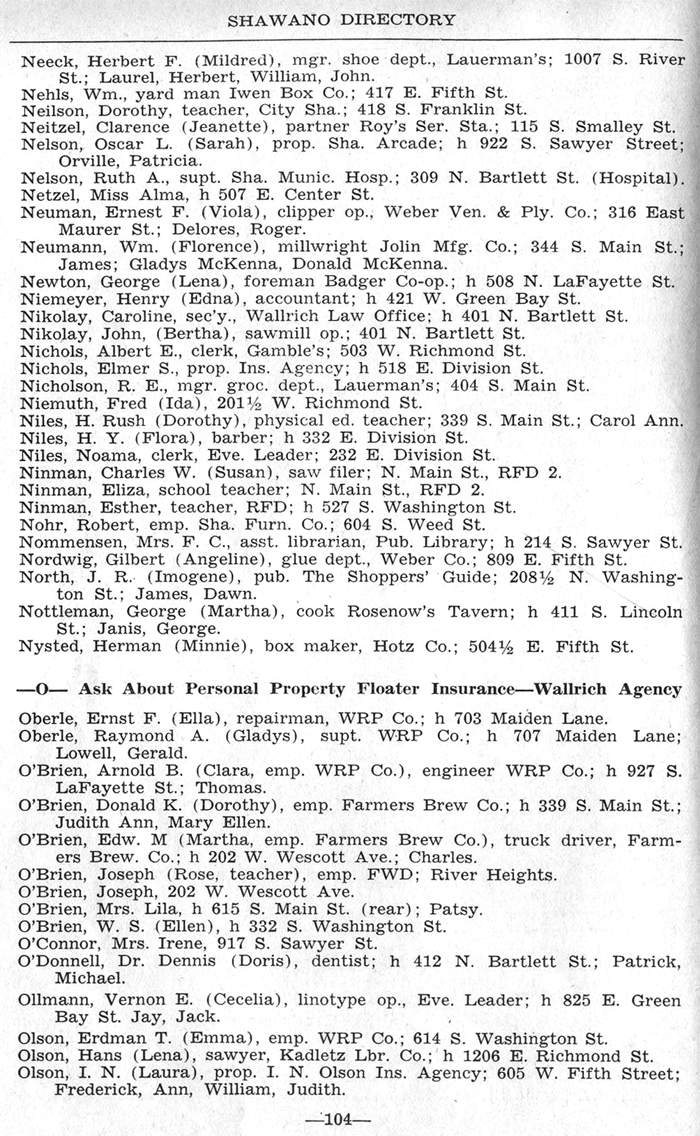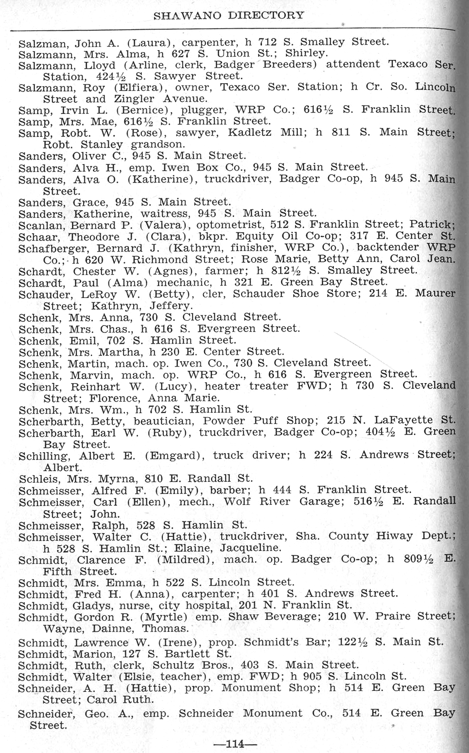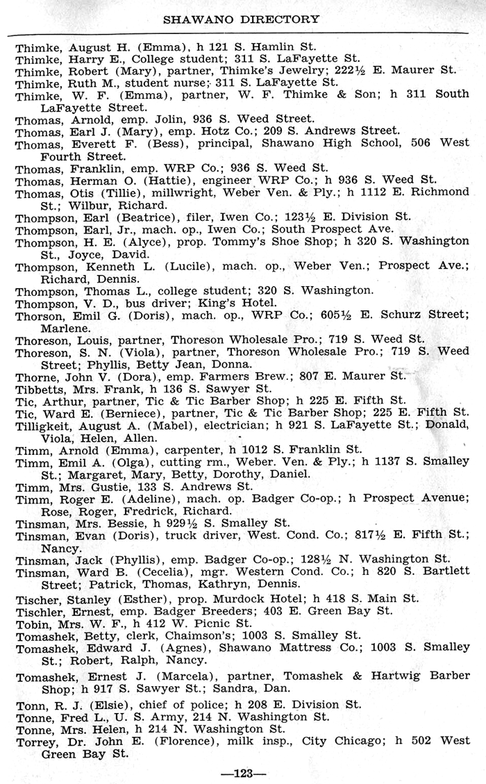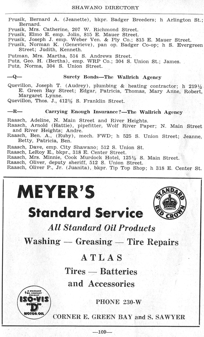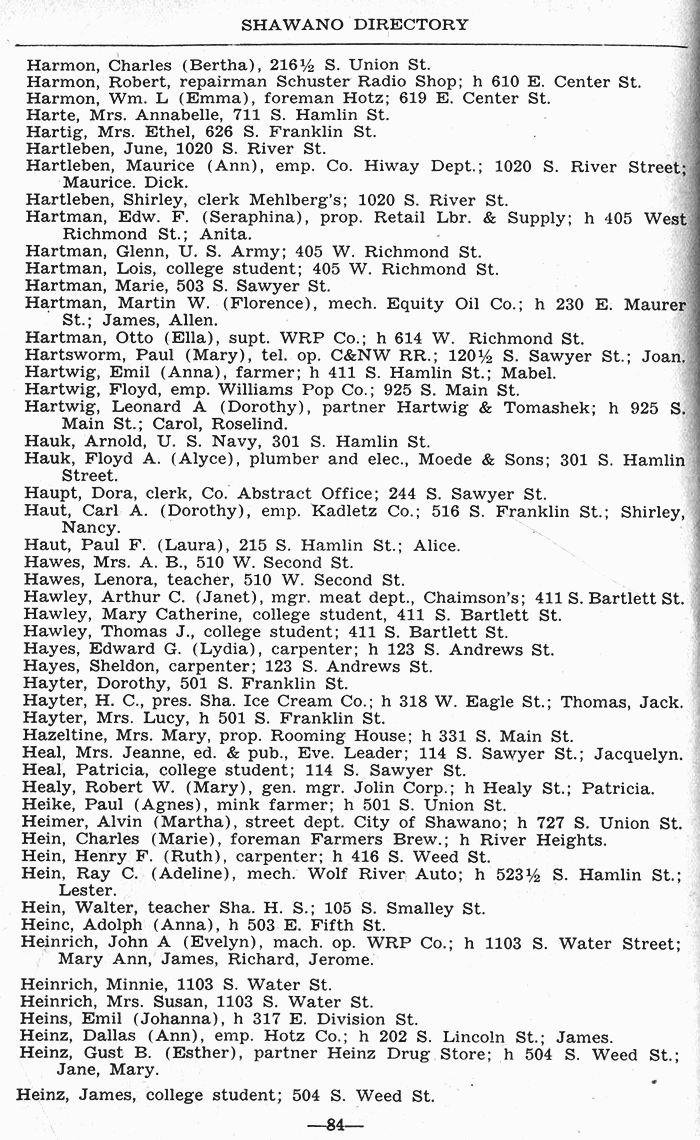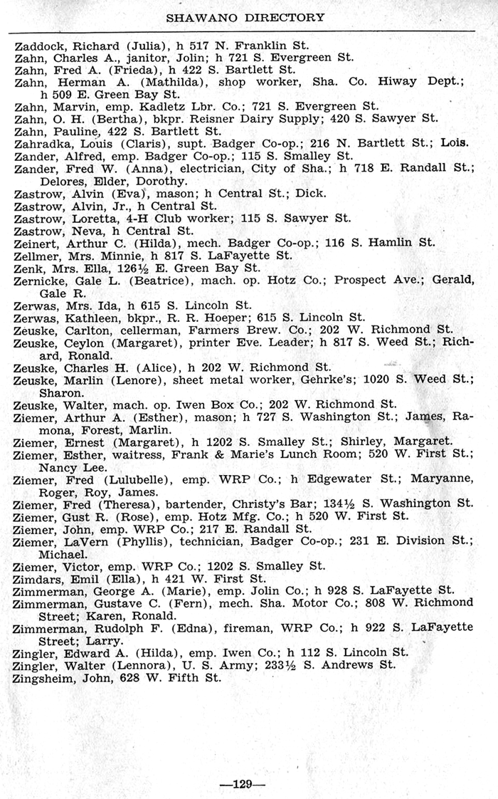 ALPHABETICAL LISTING OF SHAWANO