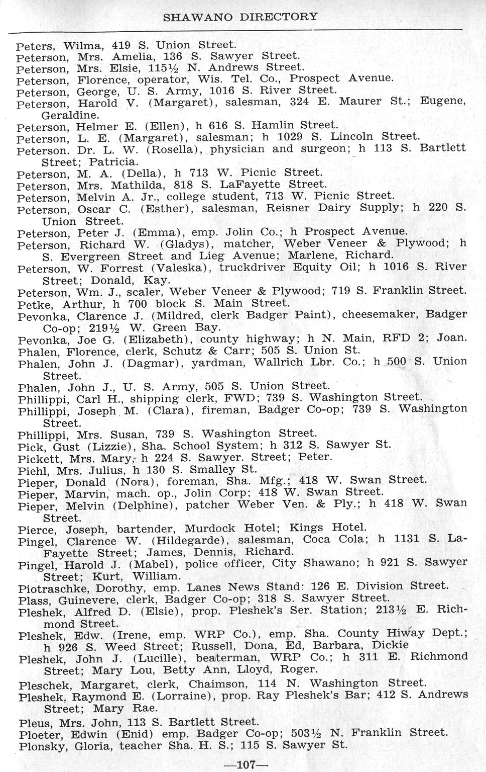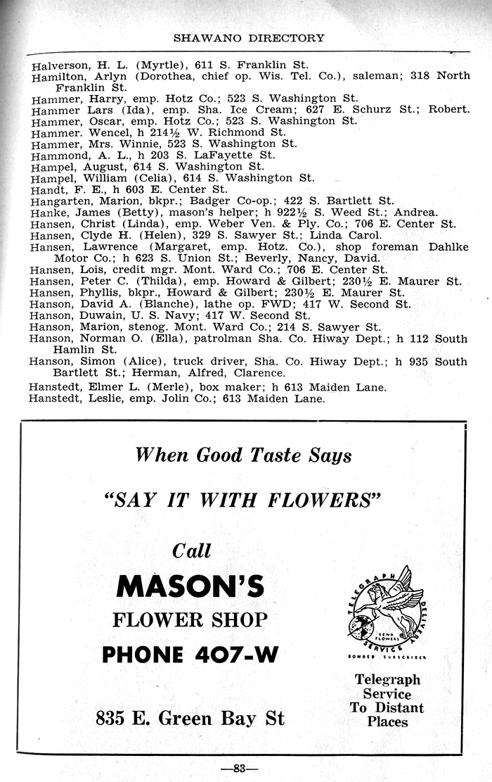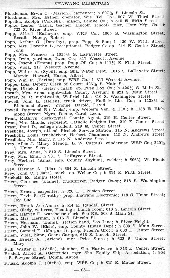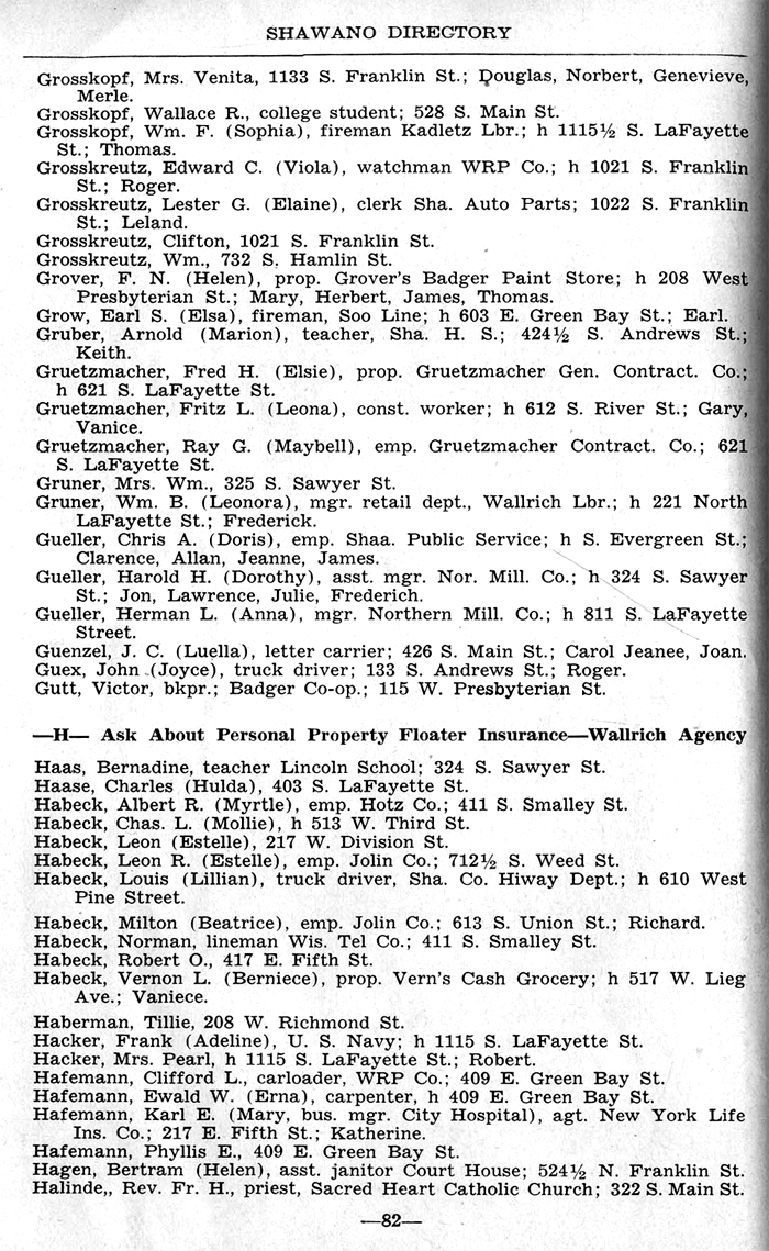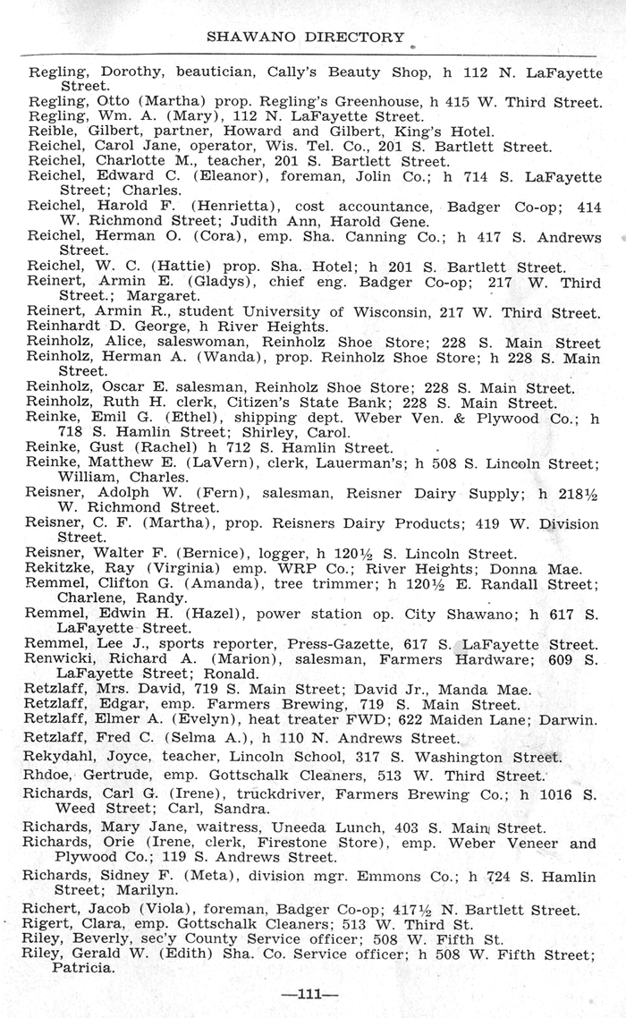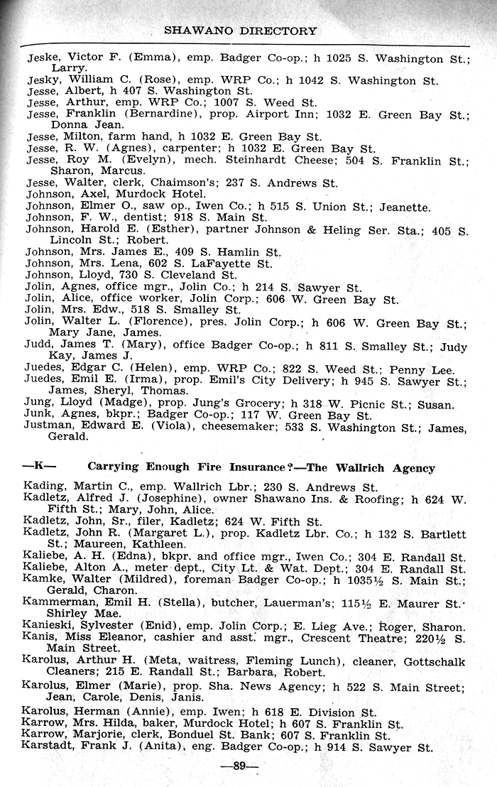 ALPHABETICAL LISTING OF SHAWANO