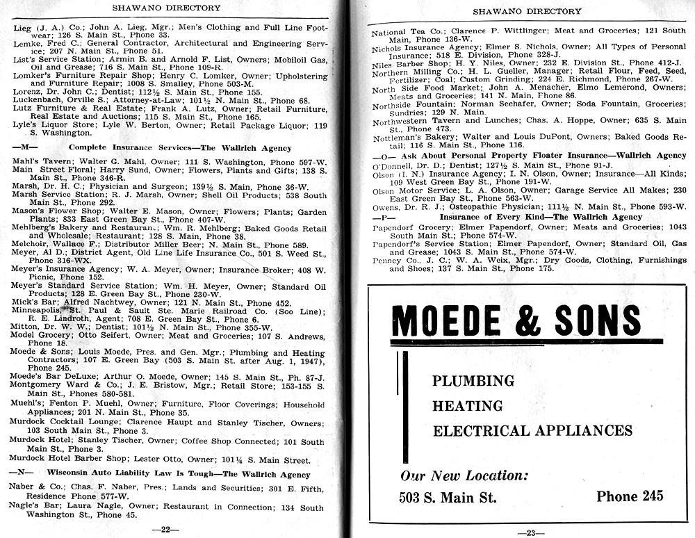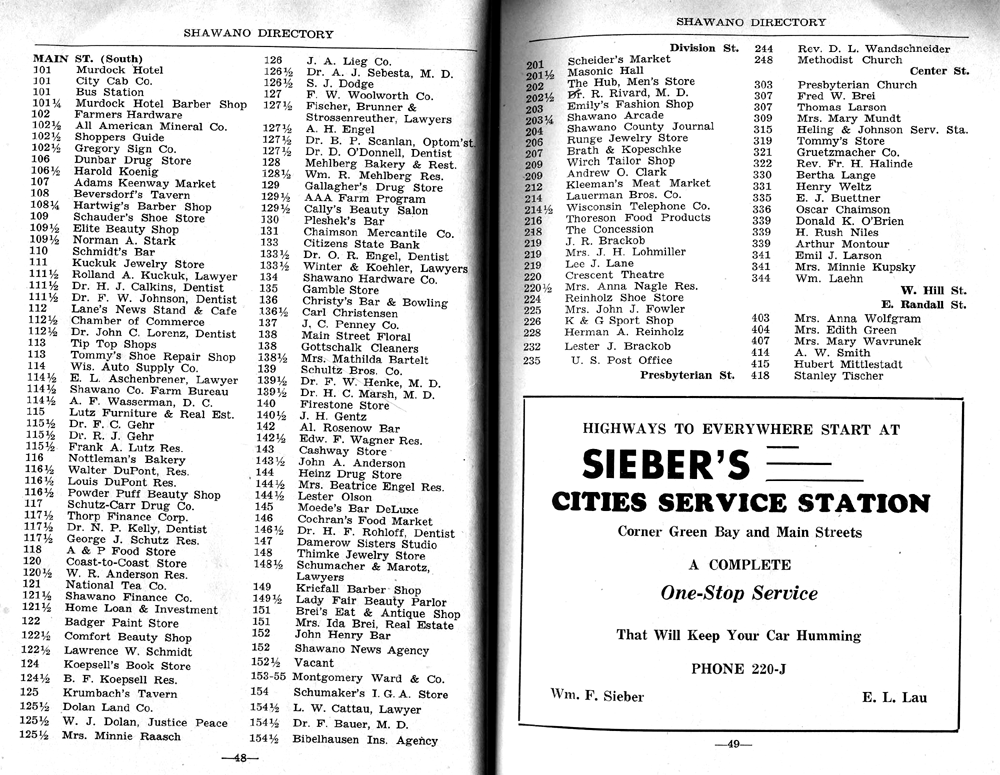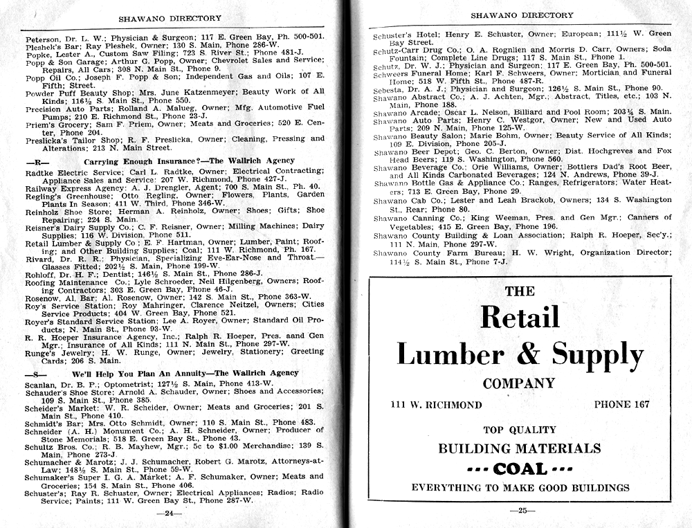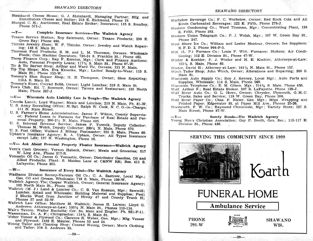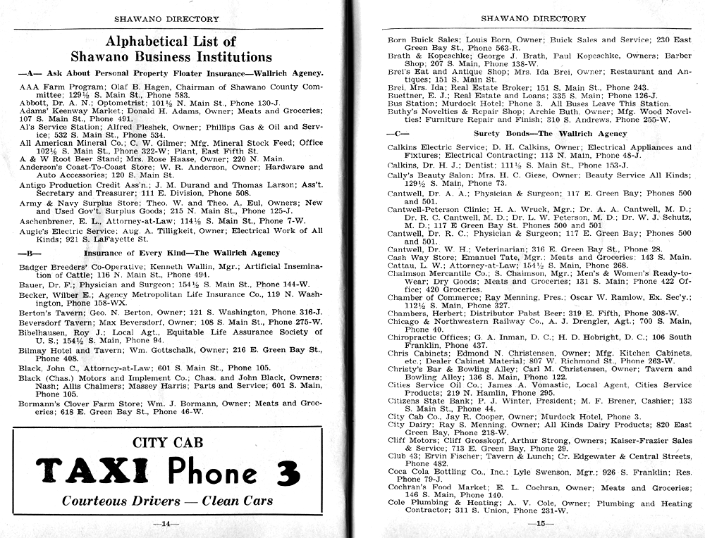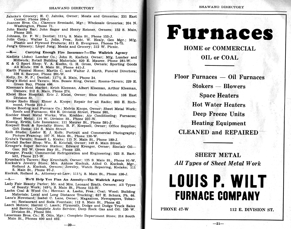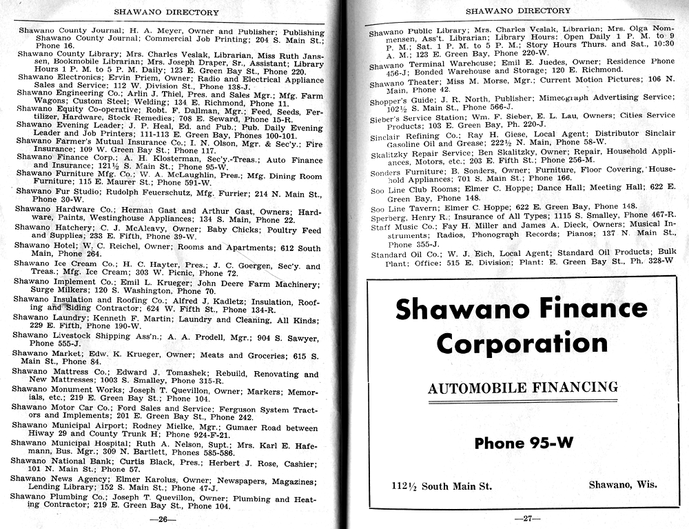 SHAWANO BUSINESSES LISTED: |