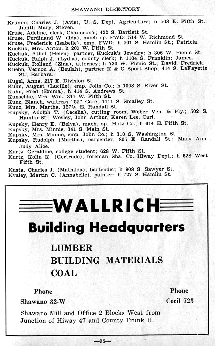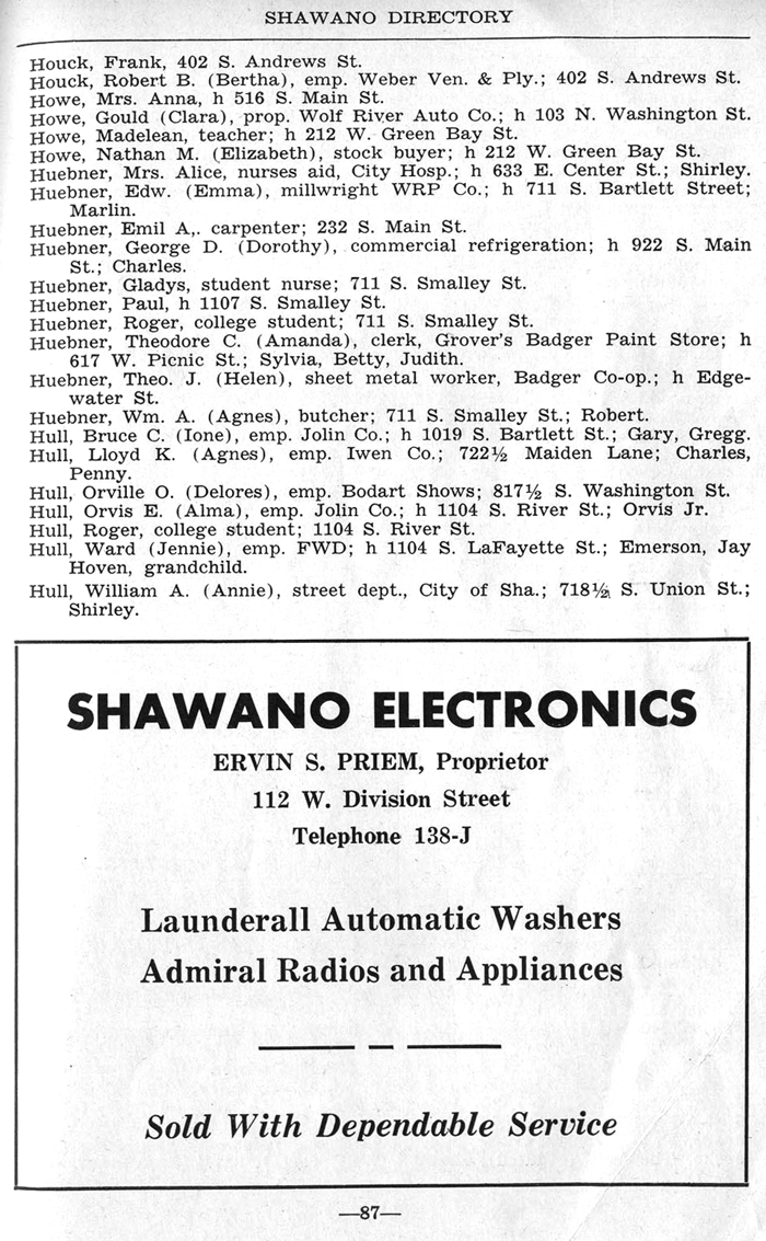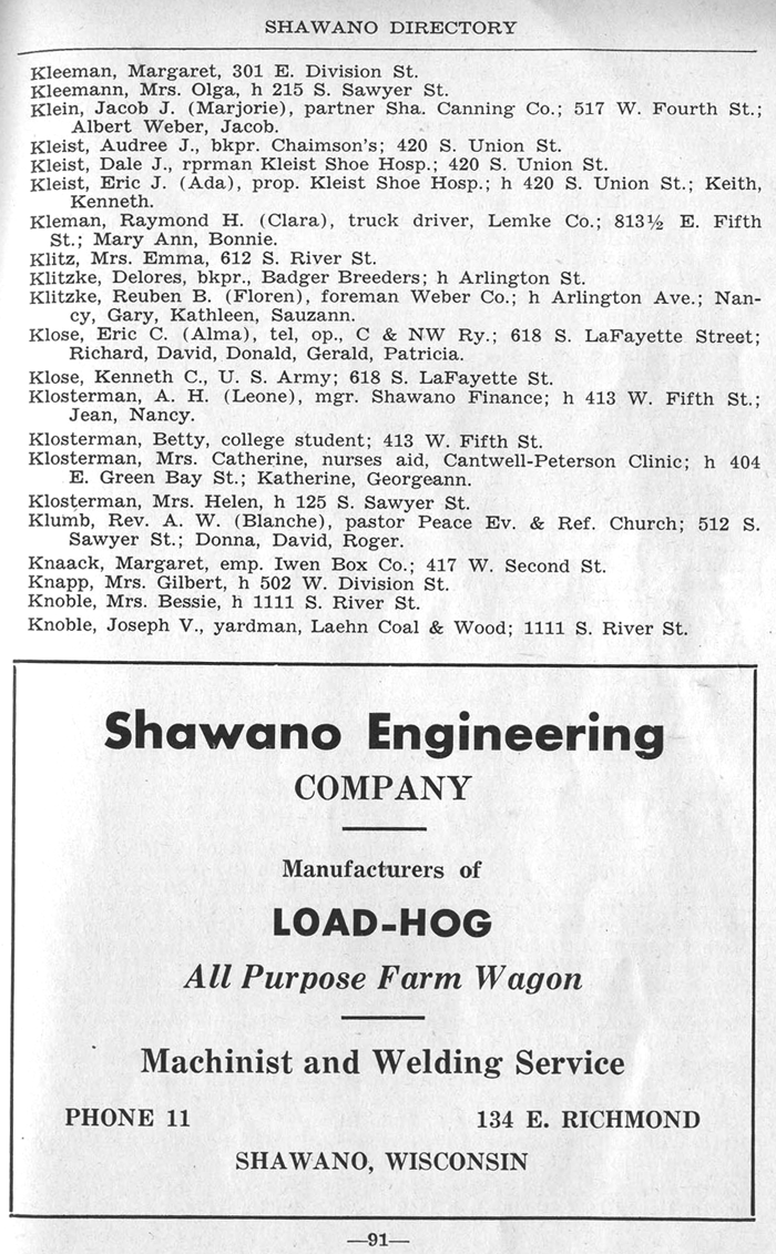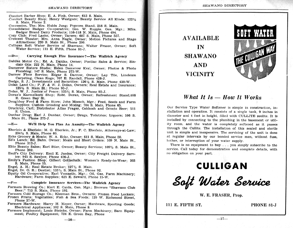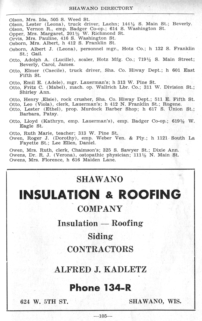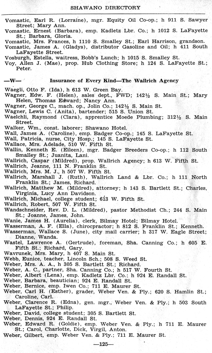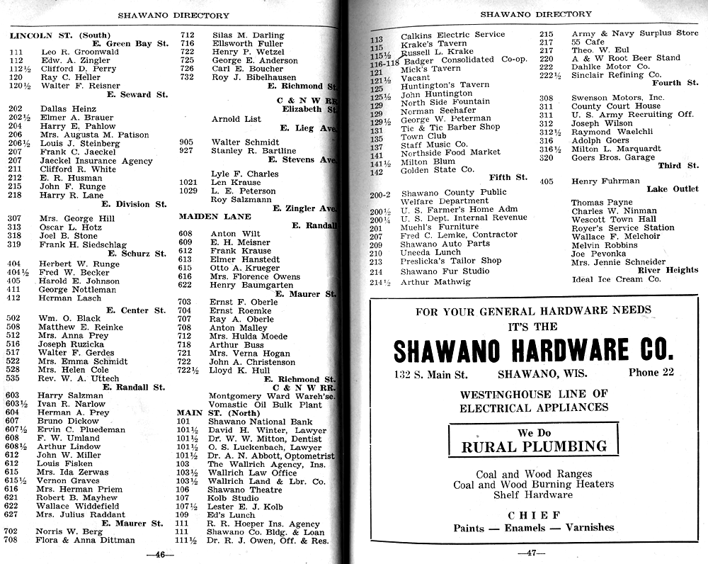 SHAWANO BUSINESSES LISTED: |