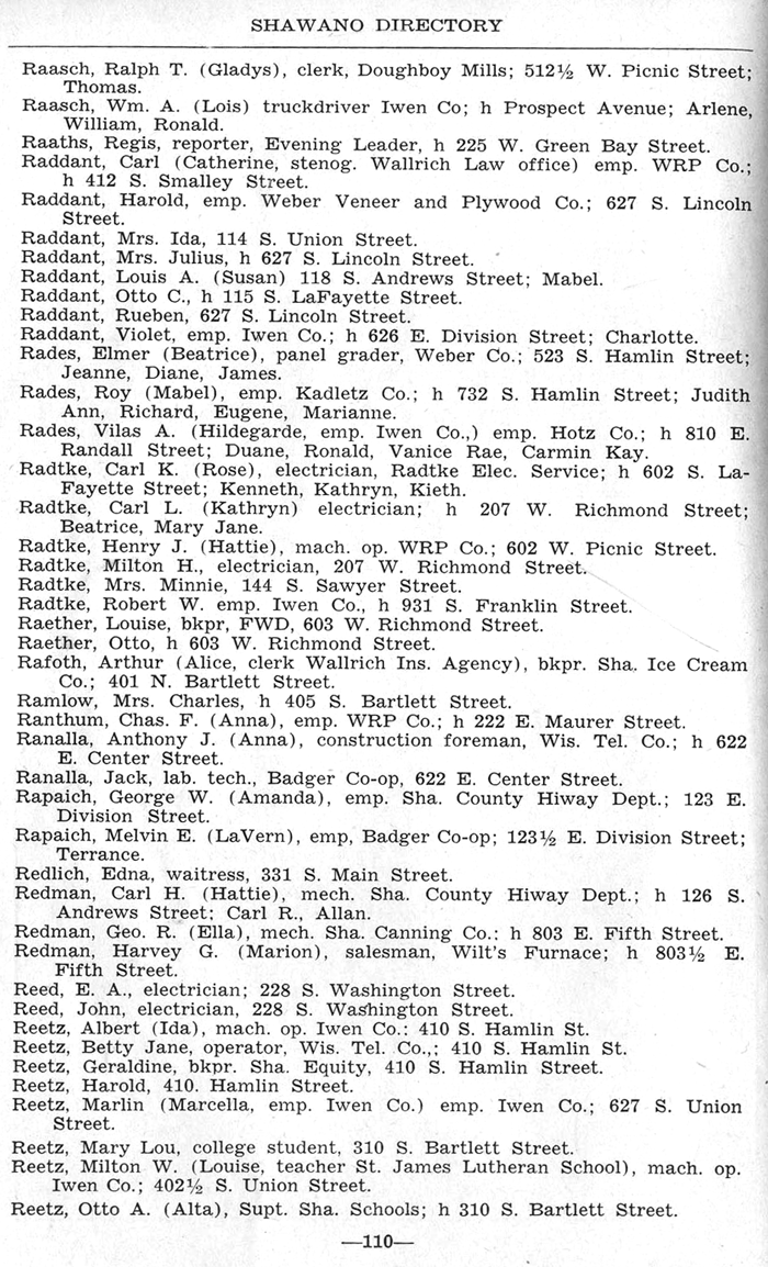 RAASCH, Ralph T. (Gladys) - REETZ, Otto A.