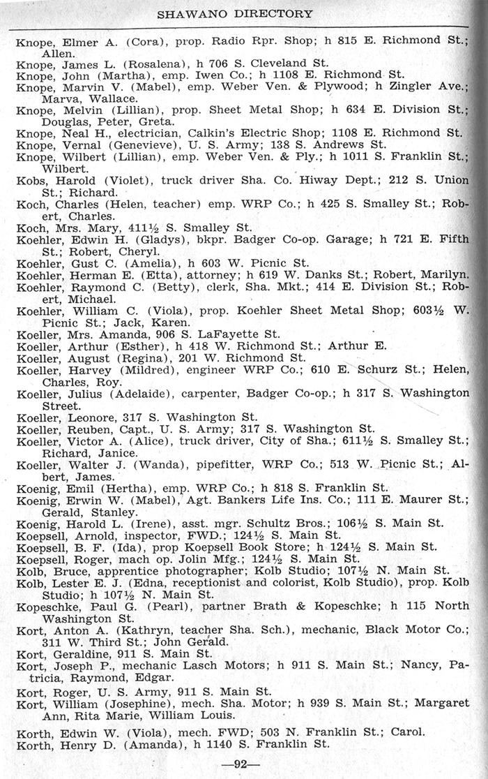 KNOPE, Elmer A. (Cora) - KORTH, Henry D.