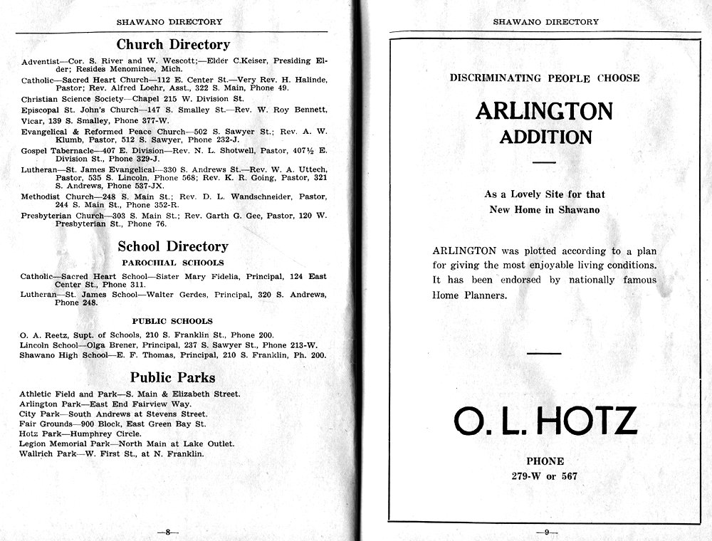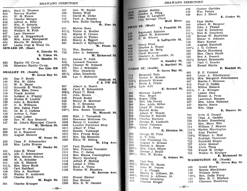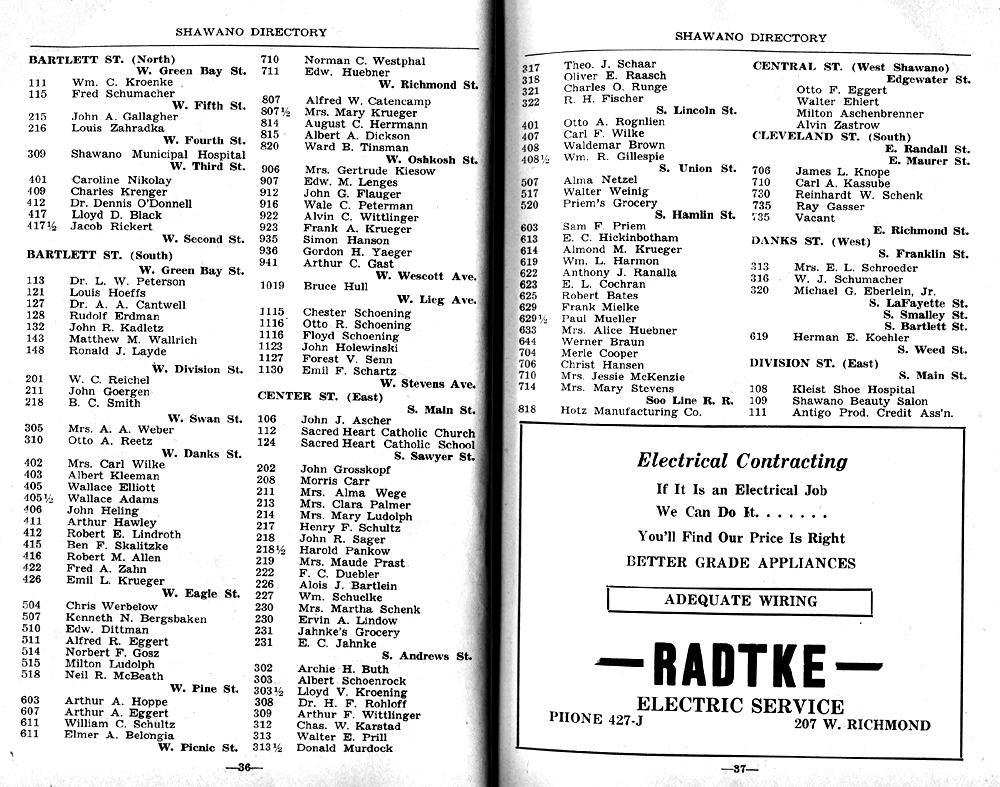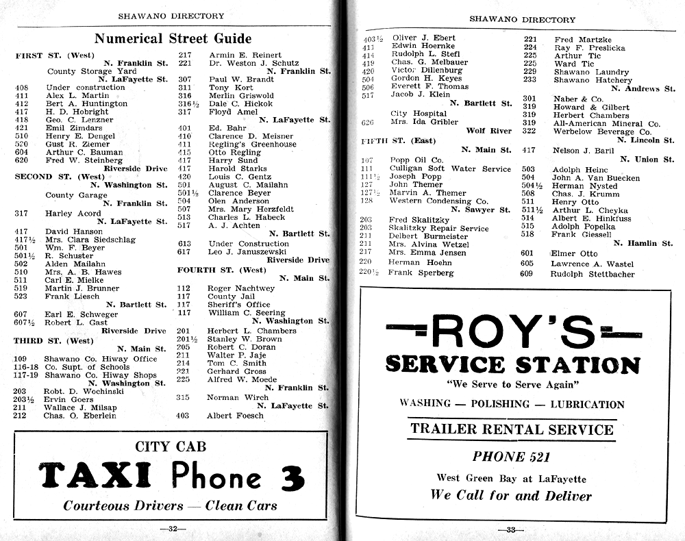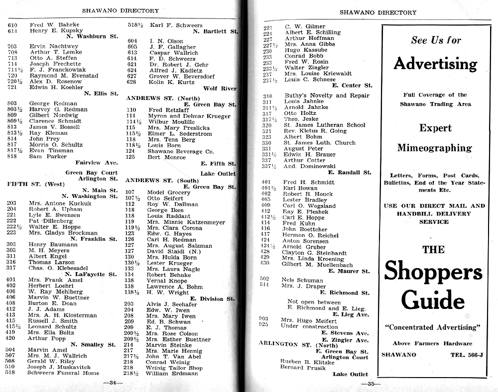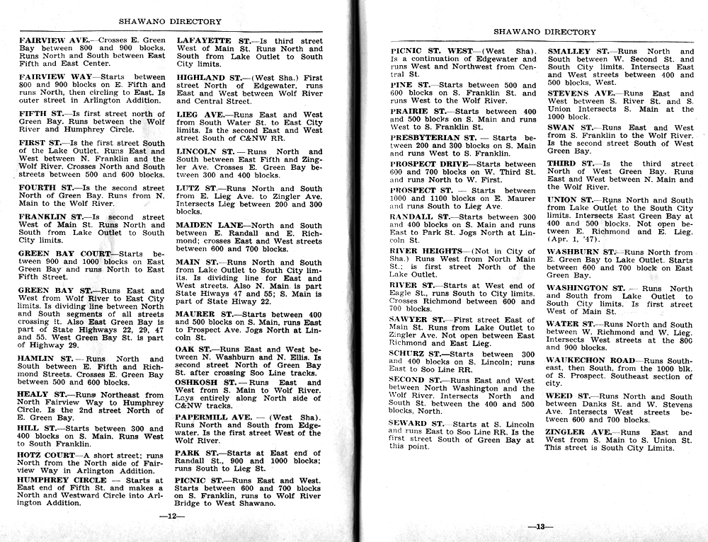 SHAWANO CITY STREET GUIDE PAGE
