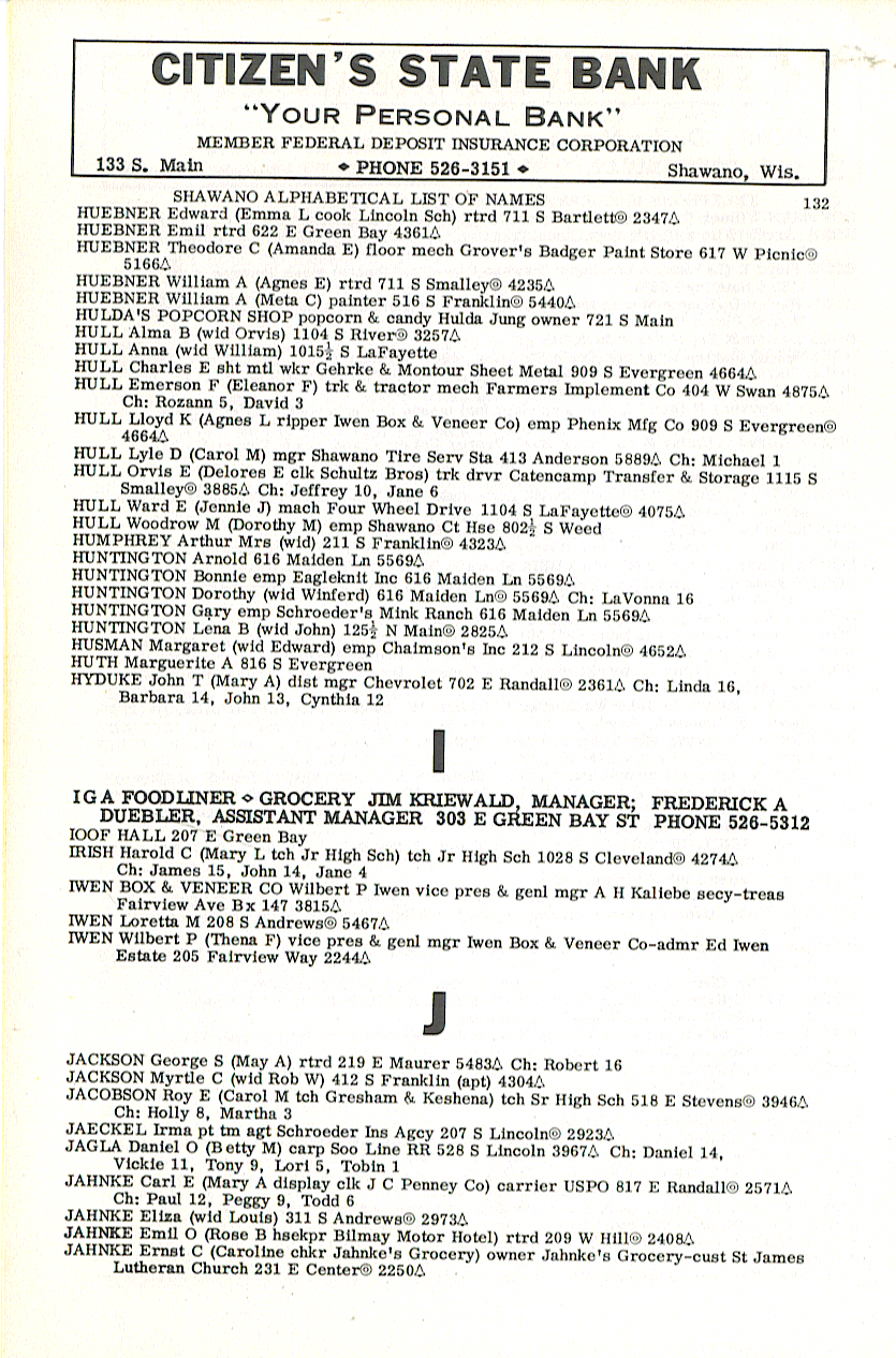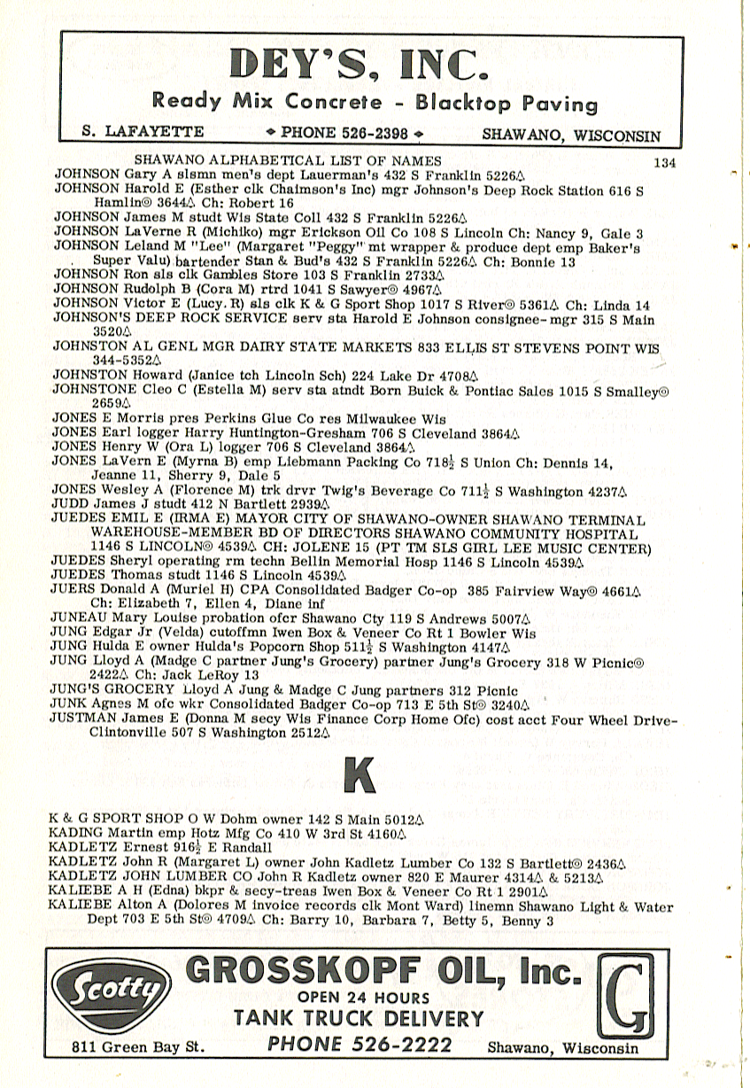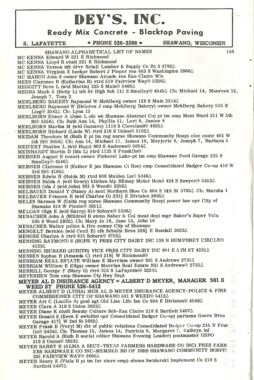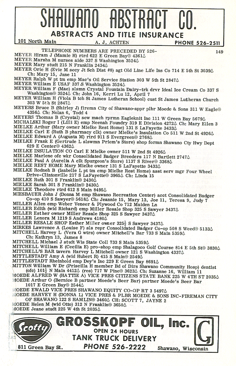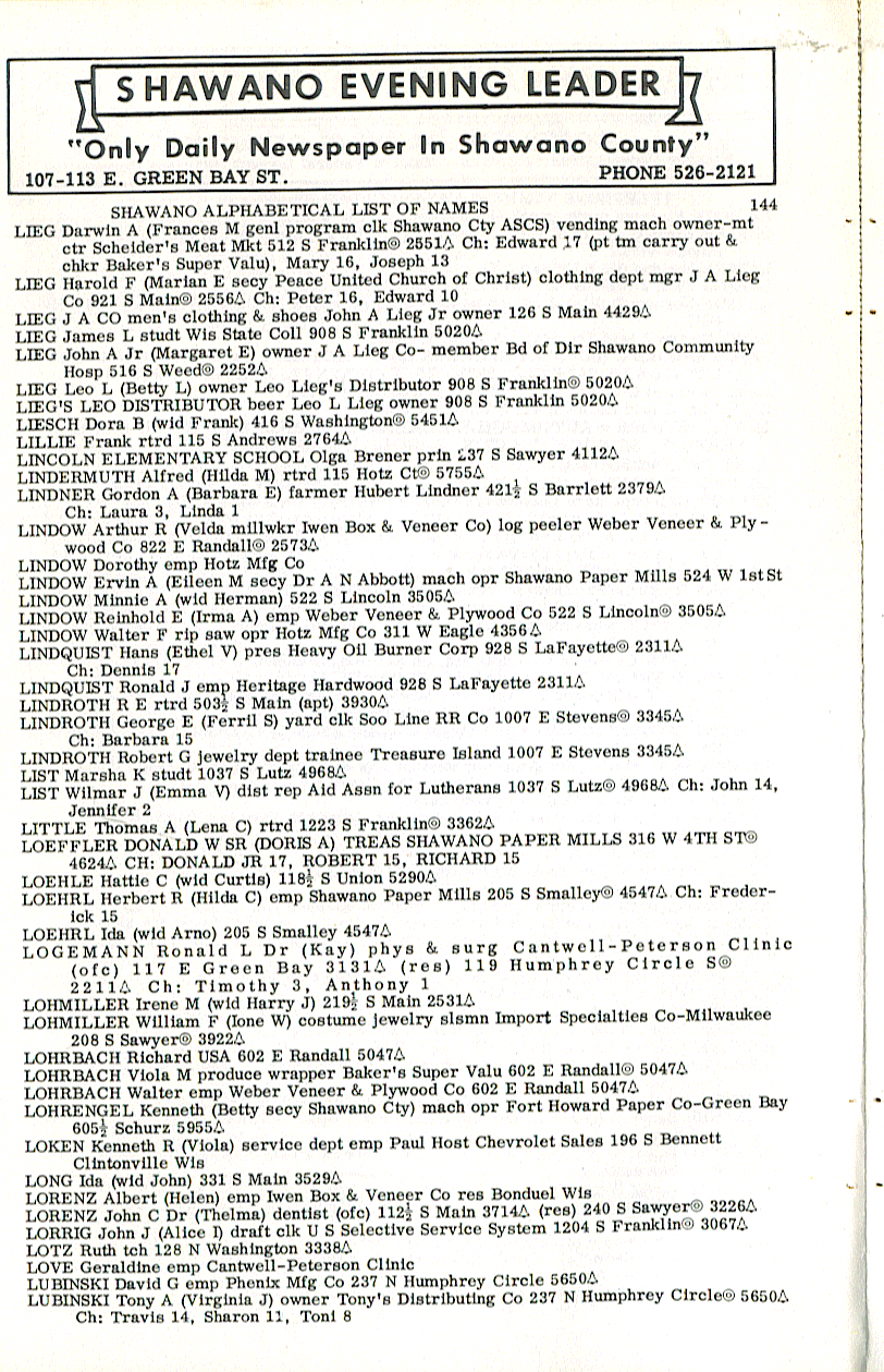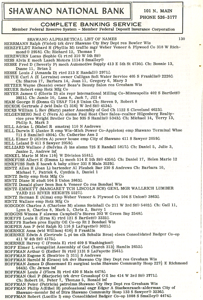 person's name, occupation and address. The 1963 Shawano