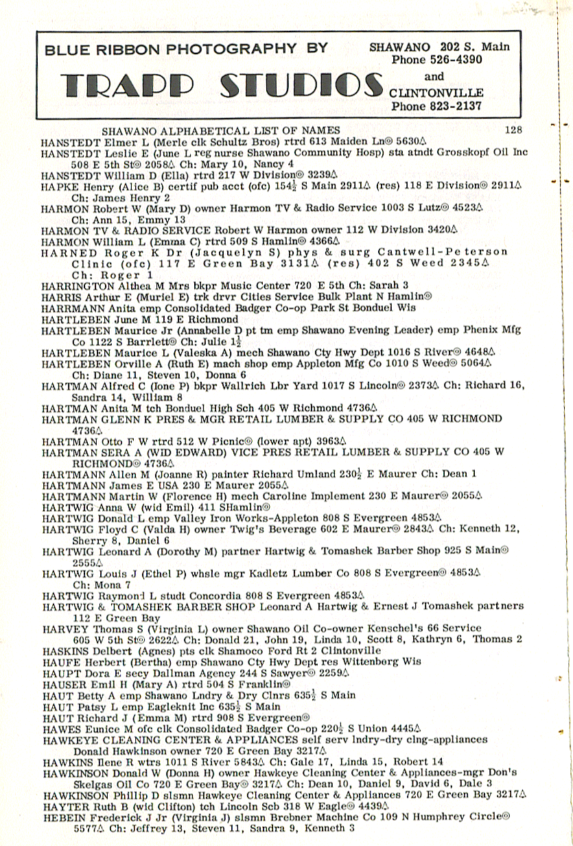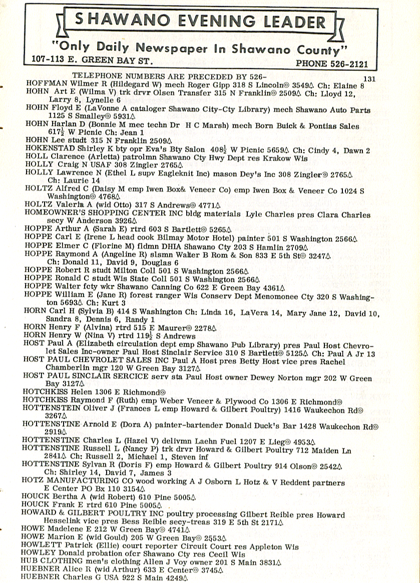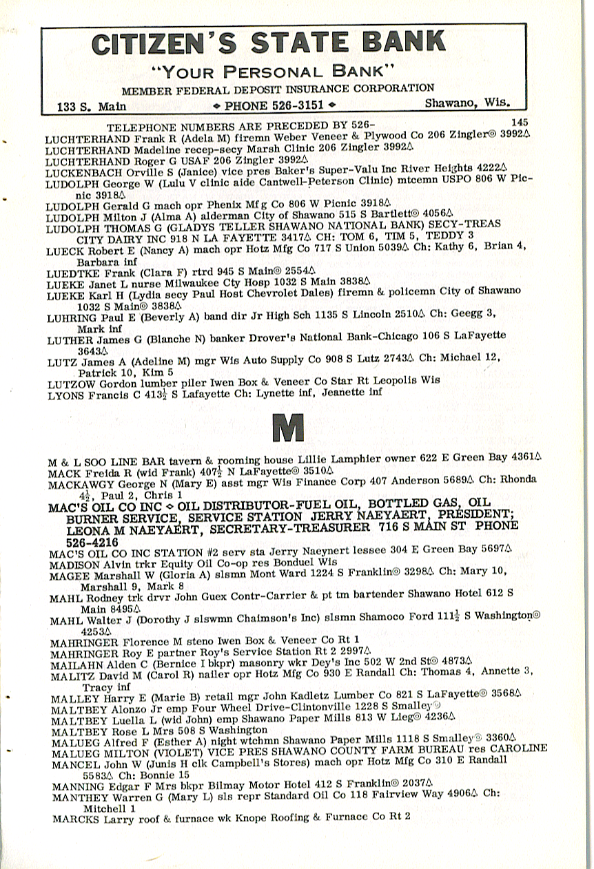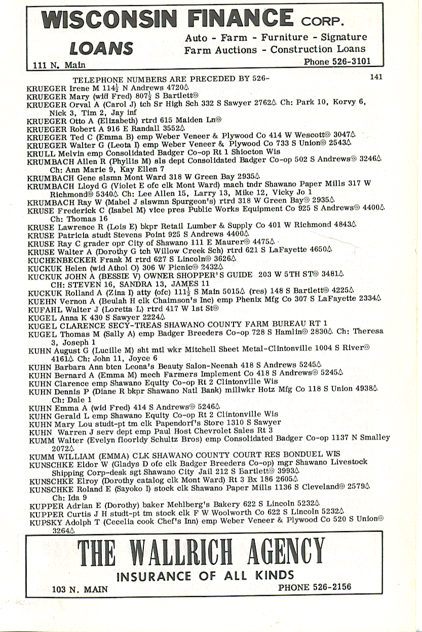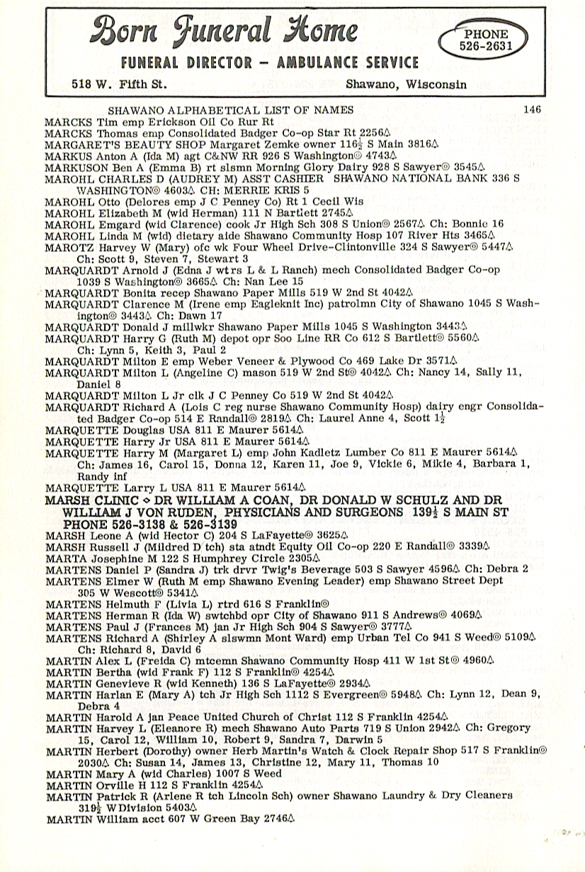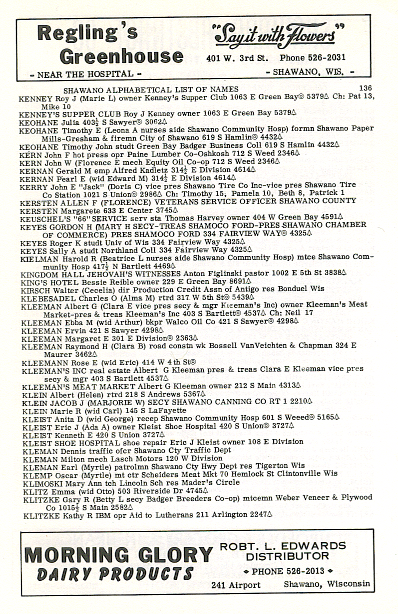 person's name, occupation and address. The 1963 Shawano