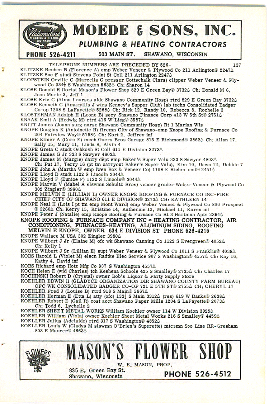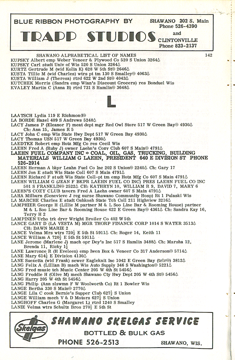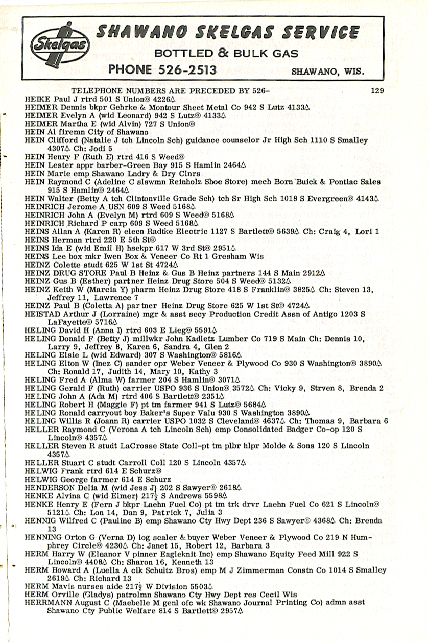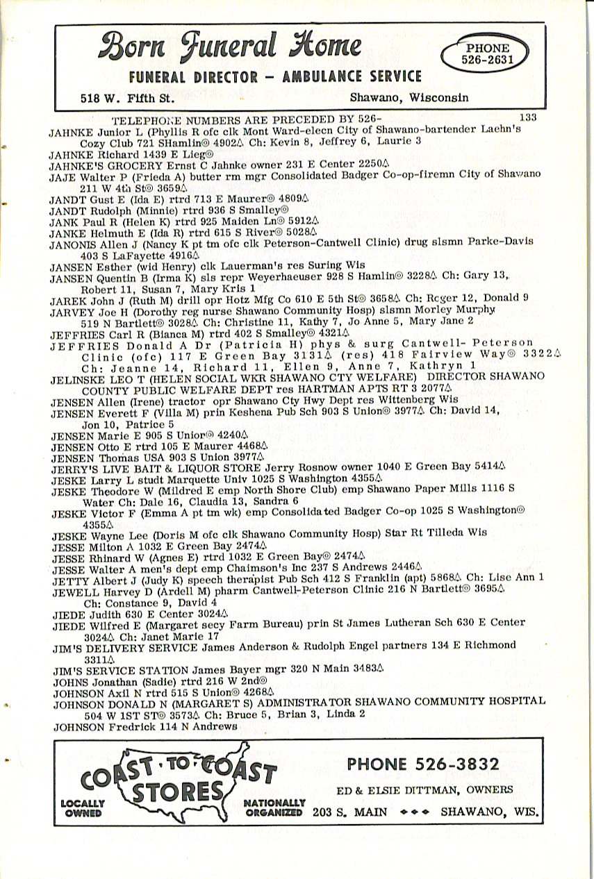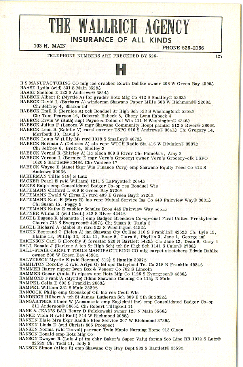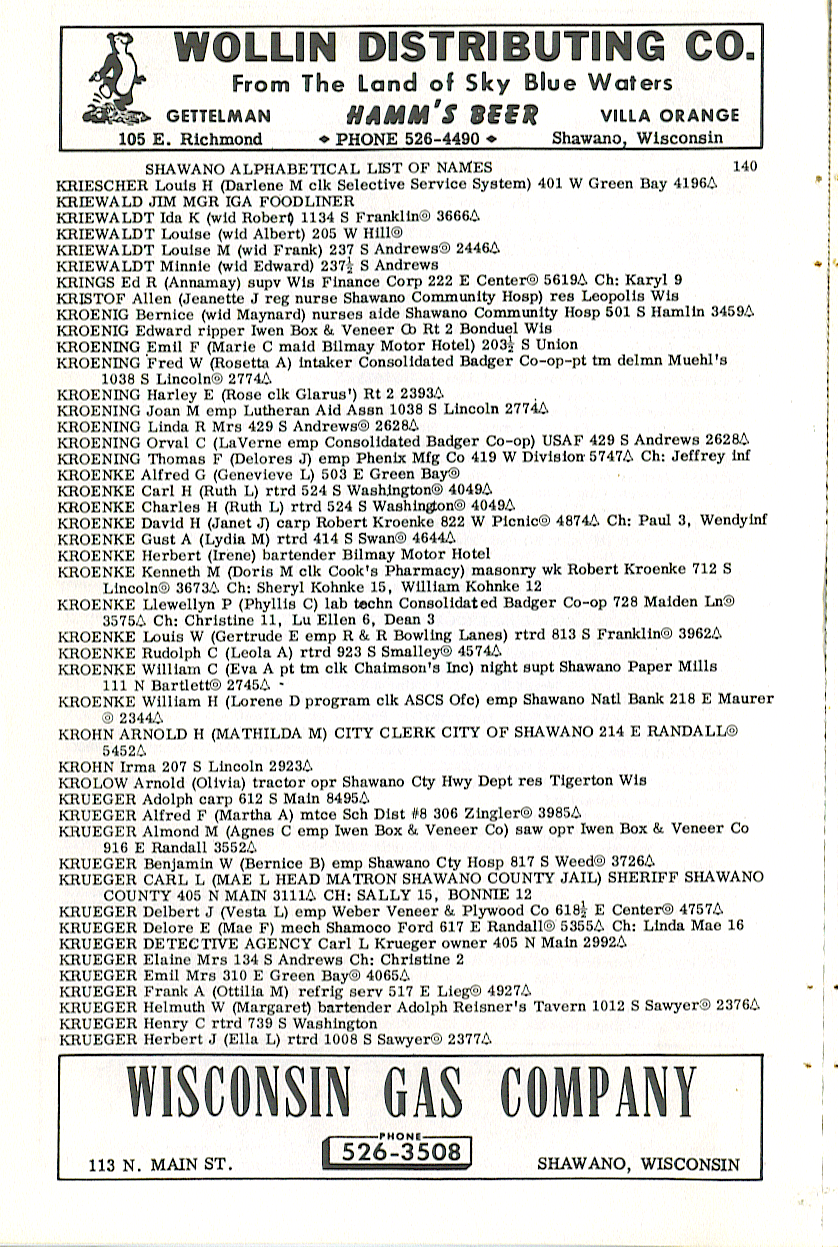 person's name, occupation and address. The 1963 Shawano
