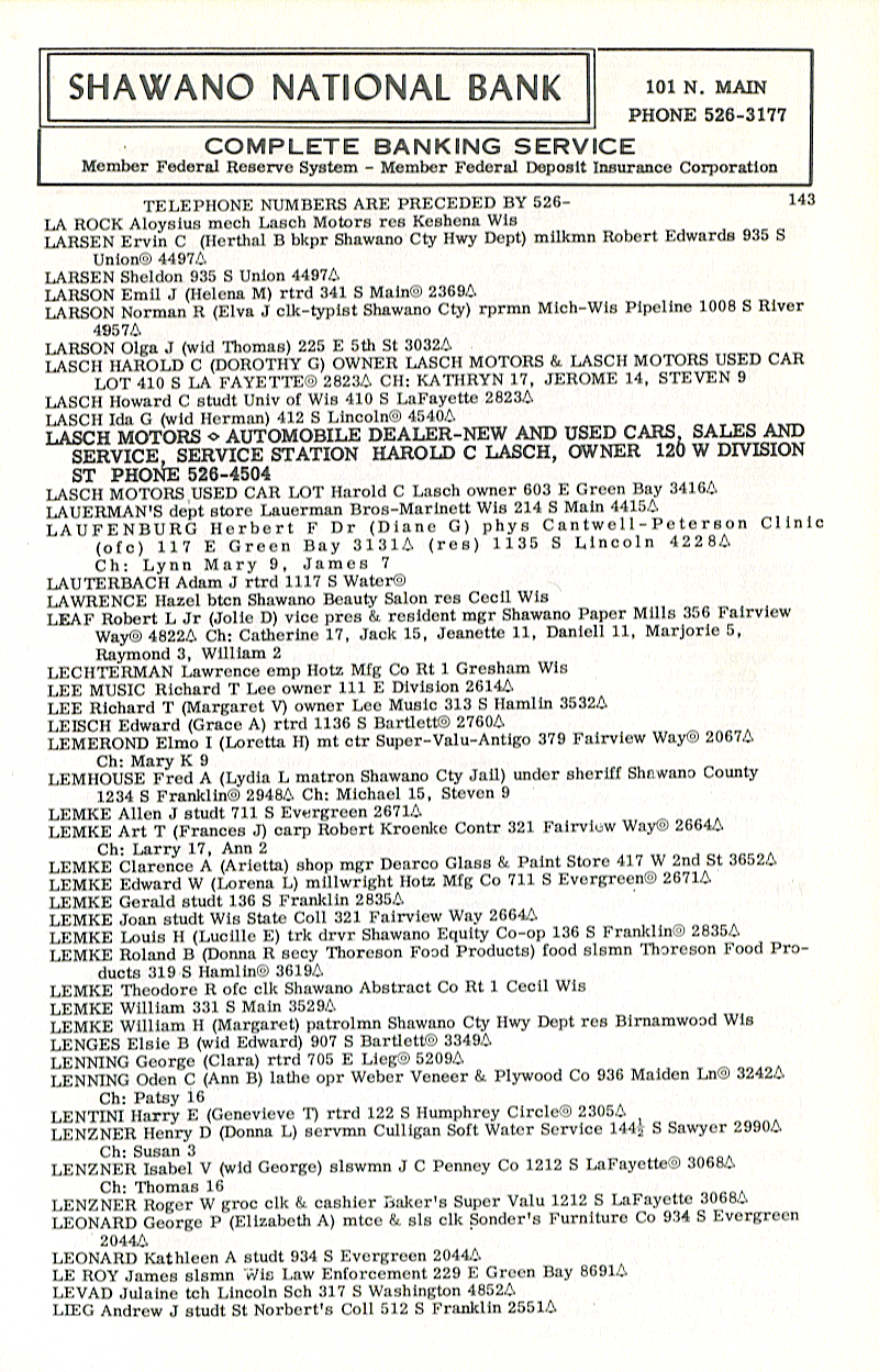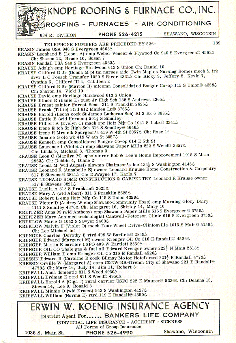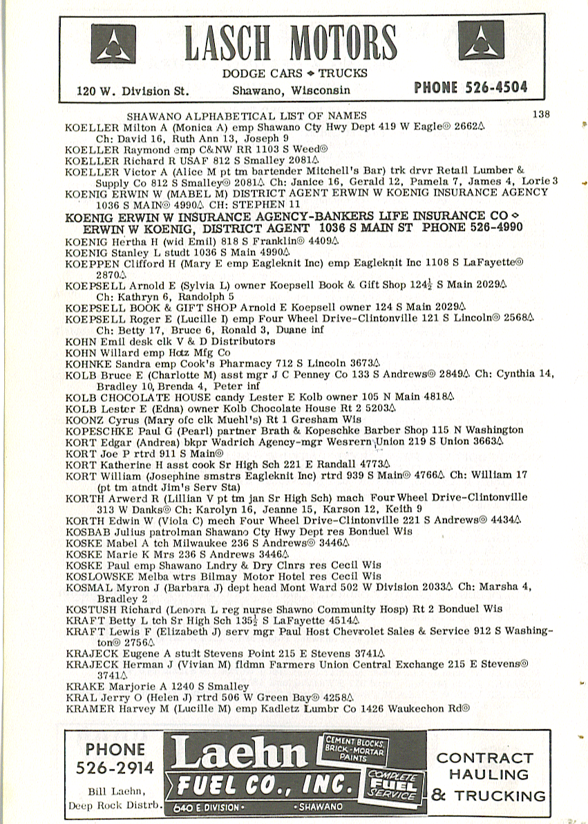 GROSSKREUTZ Lester G (Elaine M) mech Shawano Auto Parts 213 W