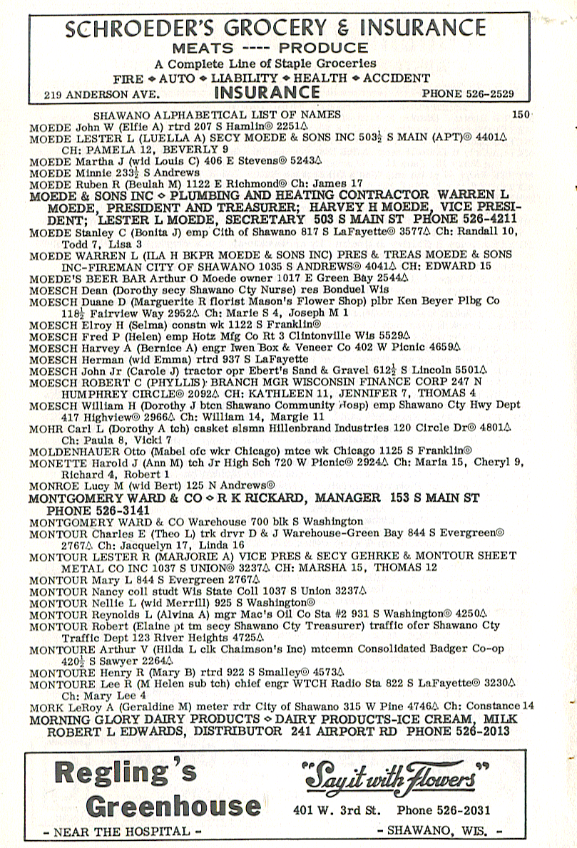 MOESCH Fred P (Helen) emp Hotz Mfg Co Rt 3 Cllntonville Win