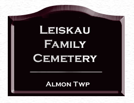 The Leiskau Family Cemetery is located on the original family homestead just off County Highway N in Almon Township.   It is across a road from St. Paul's Lutheran cemetery. These headstones were recorded on June 13, 2004. There are additional unmarked graves in the cemetery.