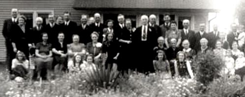 Julius Lemke and his wife (Emily?) are in the center.  The photo was taken on the Lemke farm outside of Cecil on Highway H or HH.  This photo marked Julius's 50th wedding anniversary.  From the look of the photo, there are several generations present.  If you recognize any of the people, please email Dave....he'd love to hear from you.