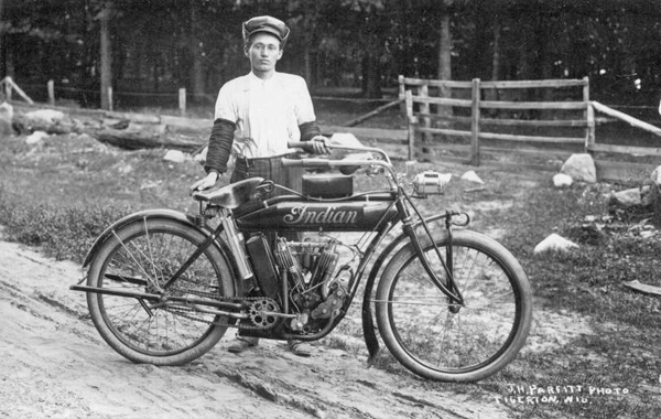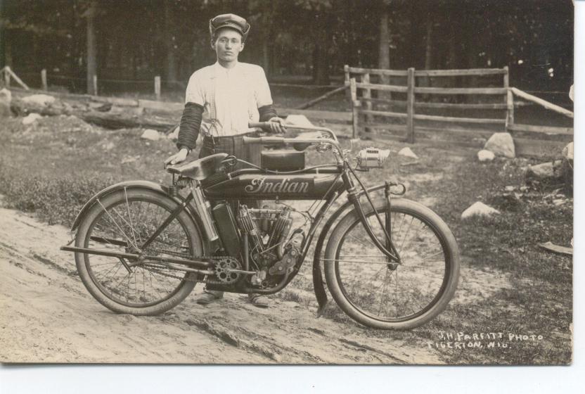 #3 - Young man with Indian motorcycle. J.H. Parfitt Photo,