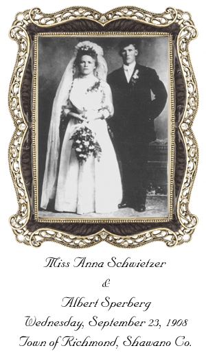 married ANNA SCHWIETZER 23 Sep 1908 in Town of Richmond, Shawano Co.,