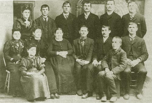 "This photo was purchased at the Popp Auction in Shawano, 1980.  The owner, Mrs. Koeller, bought it for the frame that it was in.   She thought someone might recognize one of the "sober faced" individuals and be interested in having the photo."