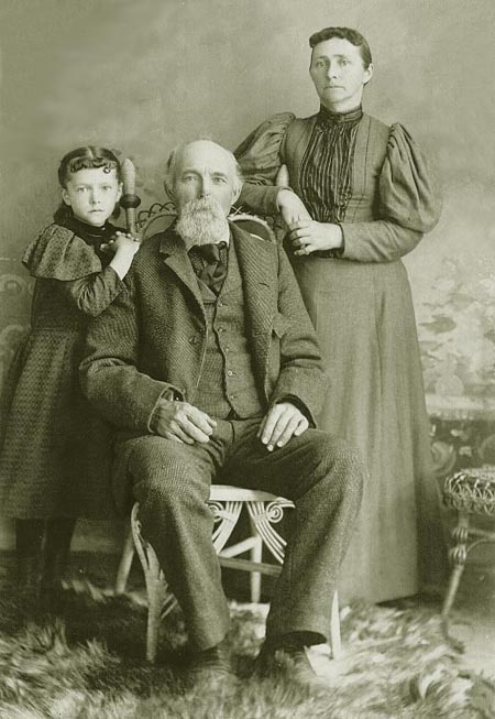 Elisha & Nancy Alexander with their granddaughter Margareth Petrie.  They came to Shawano County in 1852 from St. Lawrence Co., New York, settling just north of what in now the City of Shawano.