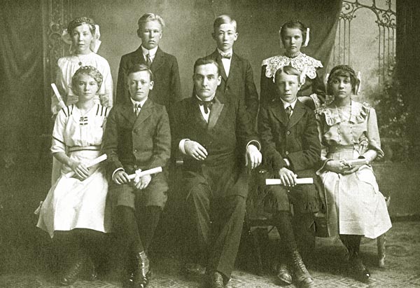 Front row: Delia Cornelius, Loyd Anker, Rev. Bugge, Raymond Mathison,