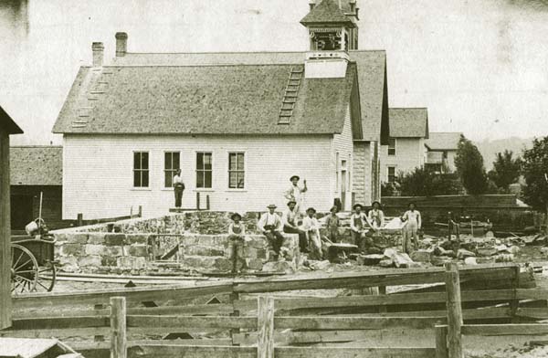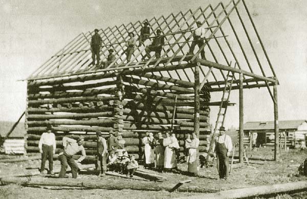 Barn raising on the August Maahs farm, west of Tilleda - circa