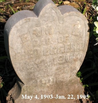 | Eggert | Erma L. | May 4, 1903 | Jan. 22, 1905 | Dau. of Fred |