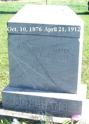 | Jonghans | Mathilde E. A. Matter | 10 Oct. 1876 | 21 April 1912 | Wife of H. |