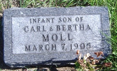 | Moll | Infant | March 7, 1905 | Son of Carl & Bertha | |