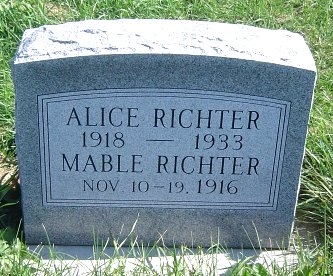 | Richter | Marie E. | 1921 | 1993 | Wife of Clarence F., Married Oct. 4, 1952, Parents of Judy, Joyce, Jeanine |