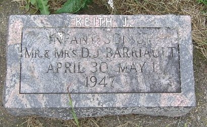 | Barriault | Keith | J. | 1947 - April 30 | 1947 - May 1 | Infant son of Mr. & Mrs. D. J. | Cindy Bohn | |