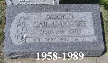 | Dorsey | Gail | E. | 1958 | 1989 | Daughter | Cindy Bohn | |