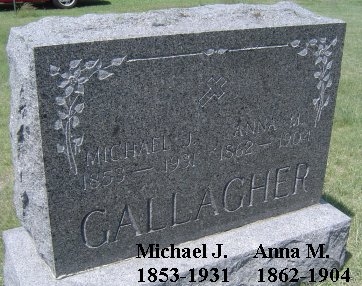 | Gallagher | Michael | J. | 1853 | 1931 | Husband of Anna M. | Cindy Bohn | |