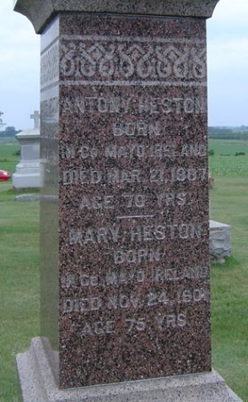 | Heston | Antony | 76 Yrs. | 1887 - March 21 | Born in Co. Mayo, Ireland | Cindy Bohn | ||