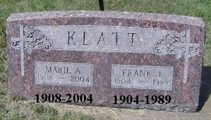 | Klatt | Frank | J.. | 1904 | 1989 | Cindy Bohn | ||