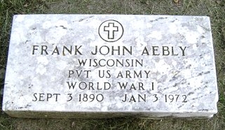 | Aebly | Frank John | Sept. 3, 1890 | Jan. 3, 1972 | Wisconsin PVT US Army, World War I |