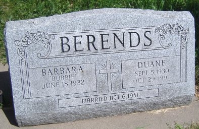 | Berends | Duane | Sept. 5, 1930 | Oct. 29, 1994 | Husband of Barbara; Married Oct. 6, 1951 |