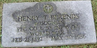 | Berends | Henry T. | Feb. 21, 1892 | May 30, 1956 | Wisconsin, PFC CO L 53 INF 6 DIV, World War I |