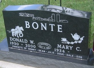 | Bonte | Donald W. | 1930 | 2000 | Husband of Mary C.; Married July 5, 1952; Parents of Donny, Dean, Julie, Doug, Dale, Dan |