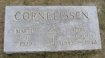 | Cornelissen | Mary | 1883 | 1944 | Nee Foreman |