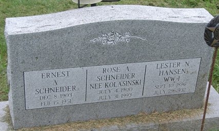 | Walz | Leander | 1927 | 1993 | Husband of Lavina; Married Oct. 25, 1948 |