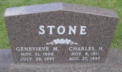| Stone | Genevieve M. | Nov. 21, 1906 | July 29, 1997 | Wife of Charles H. |