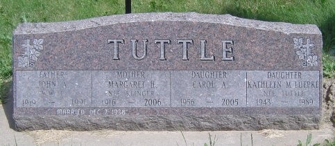 | Tuttle | John A. | 1919 | 1991 | Husband of Margaret H.; Married Dec. 7, 1938 |