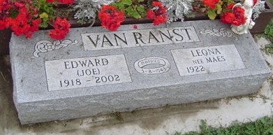 | Van Ranst | Edward (Joe) | 1918 | 2002 | Husband of Leona; Married 5-8-1943 |