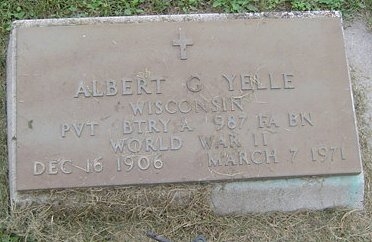 | Yelle | Albert G. | Dec. 16, 1906 | March 7, 1971 | Wisconsin, PVT Btry A 987 FA BN, World War II |