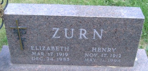 | Zurn | Henry | Nov. 17, 1912 | May 11, 1994 | Husband of Elizabeth |