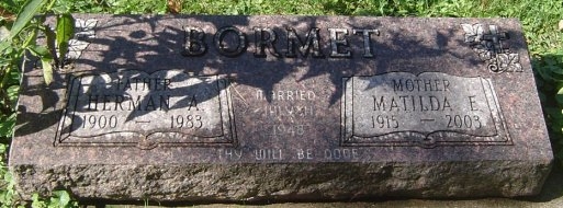 | Bormet | Matilda E. | 1915 | 2003 | Mother, Wife of Herman A., Married July 11, 1948 |
