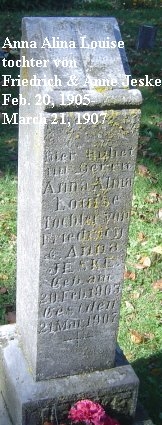 | Jeske | Anna Alina Louise | 20 Feb. 1905 | 21 Mar 1907 | Tochter von Friedrich & Anne |
