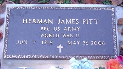 | Pitt | Herman James | Jun. 7, 1916 | May 26, 2006 | PFC US Army, World War II |