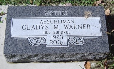 | Warner | Gladys M. | 1923 | 2004 | Aeschliman, Nee Sondrol, Mother |