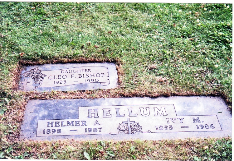 | Bishop | Cleo E. | 1923 | 1990 | Daughter of Helmer and Ivy Hellum | Robert Bishop | |||