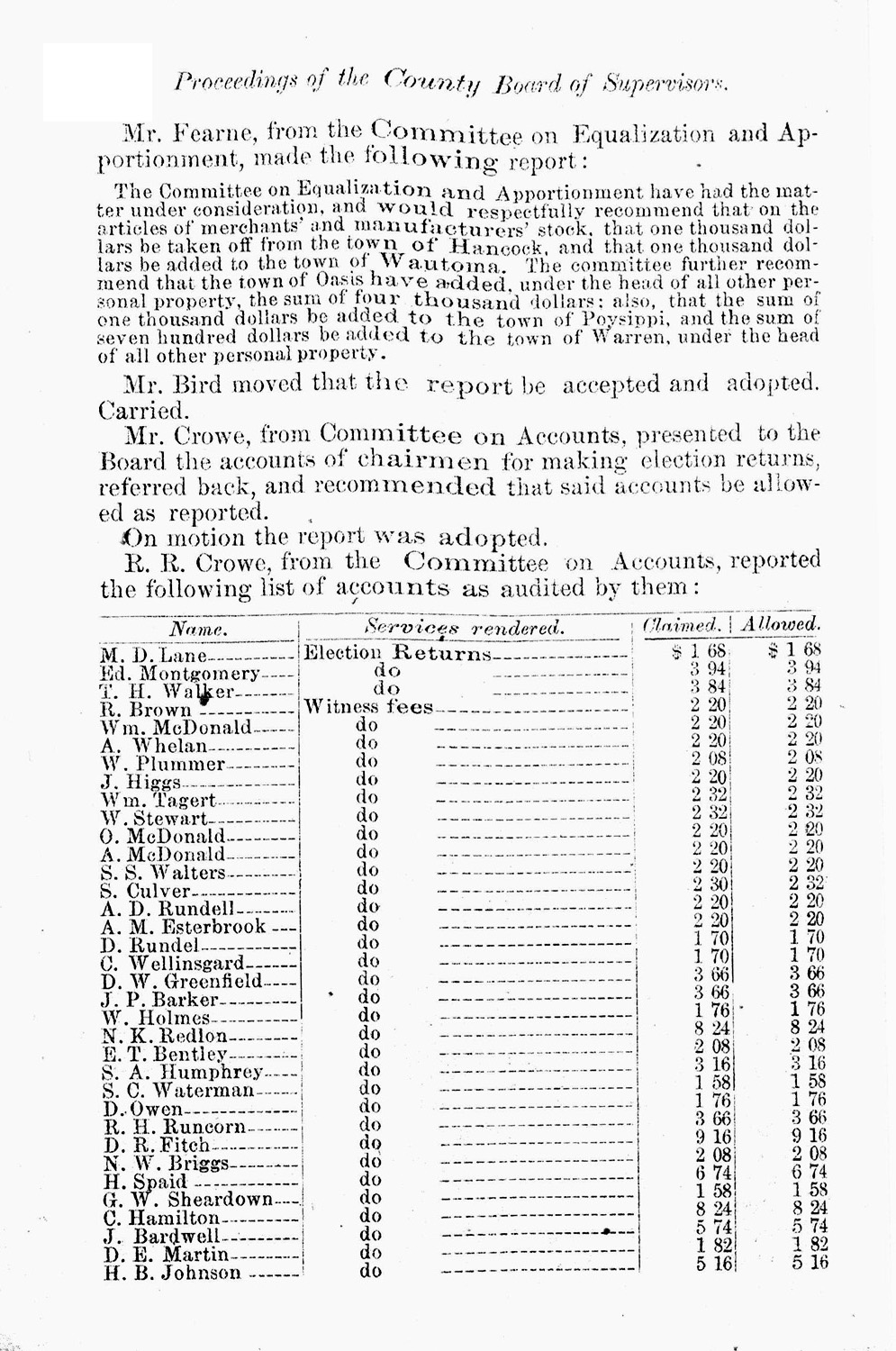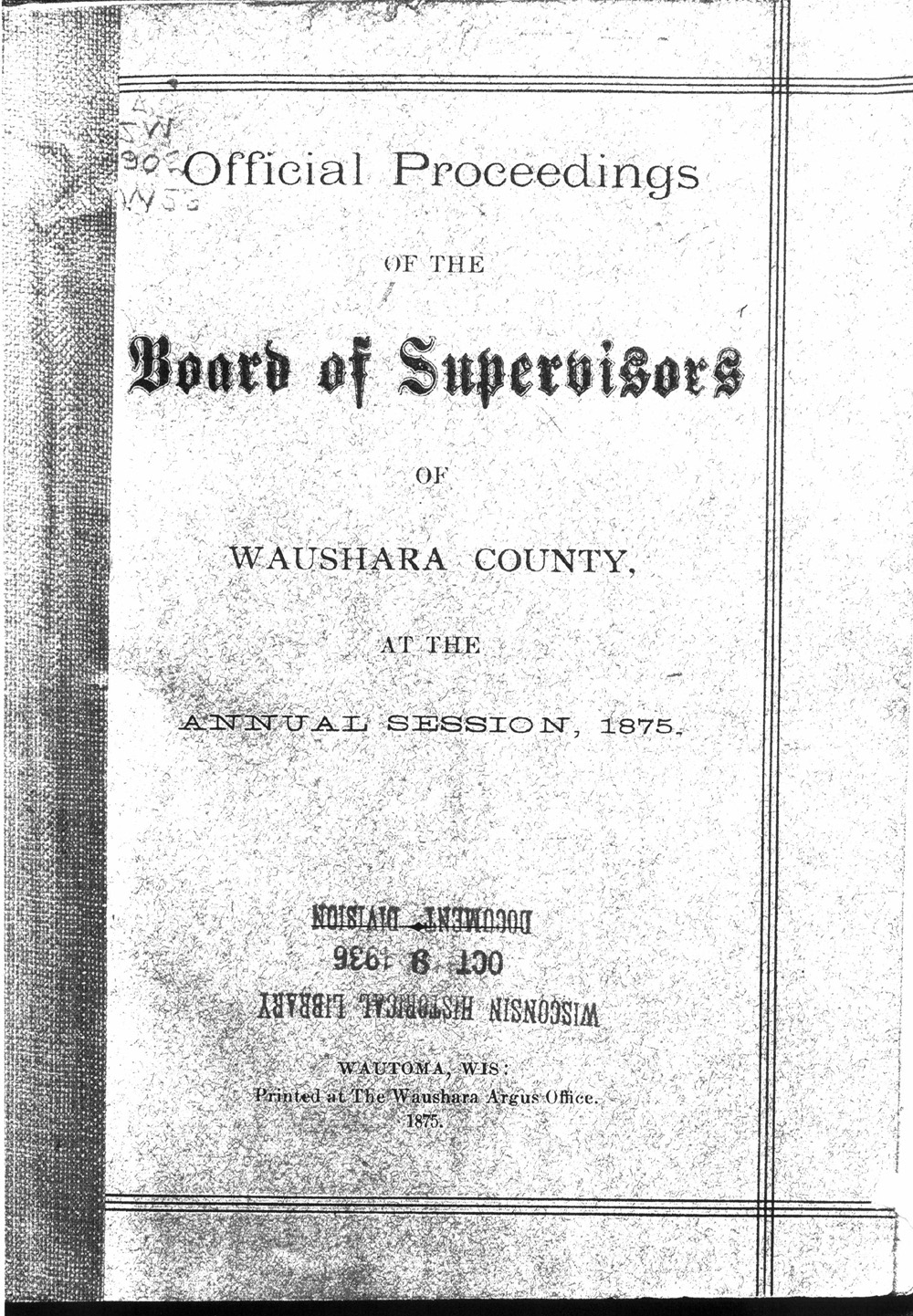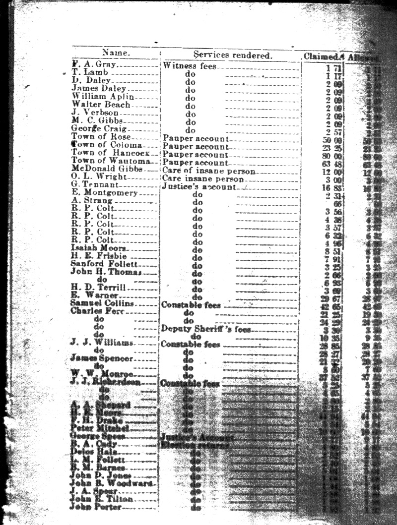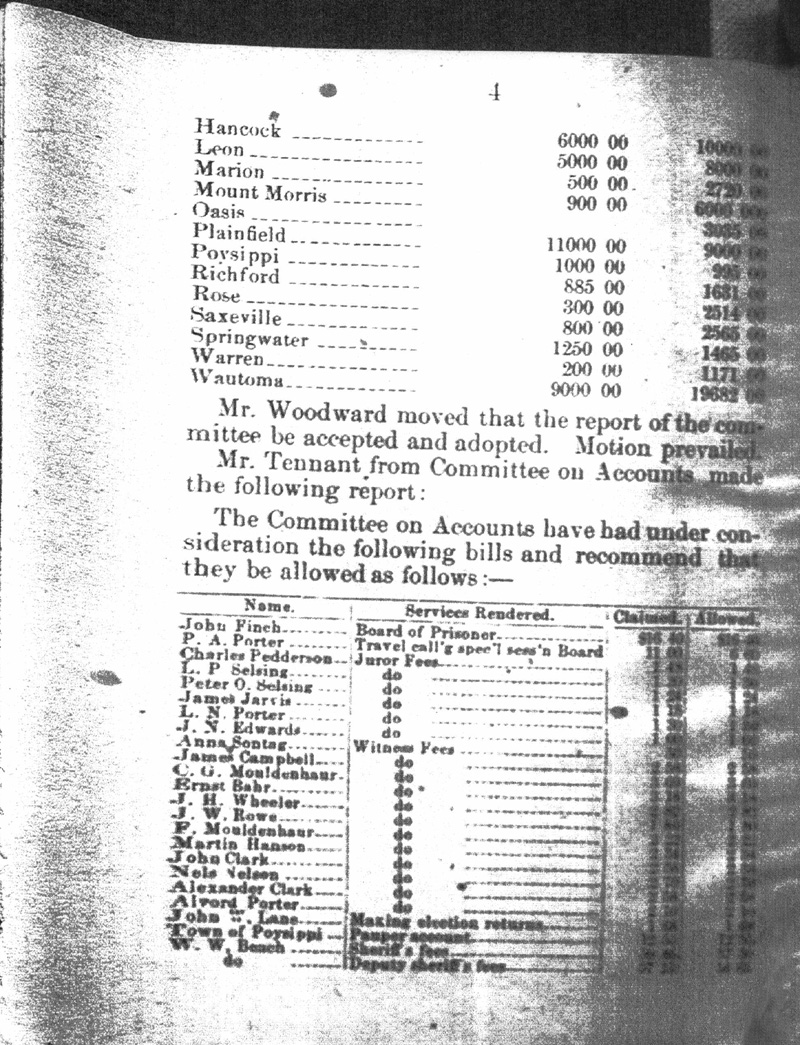 Official Proceedings of the Board of Supervisors of Waushara County1879 AccountsObtained May 2007 from original held at the Wisconsin State Historical Society Library In Madison, Wisconsin
