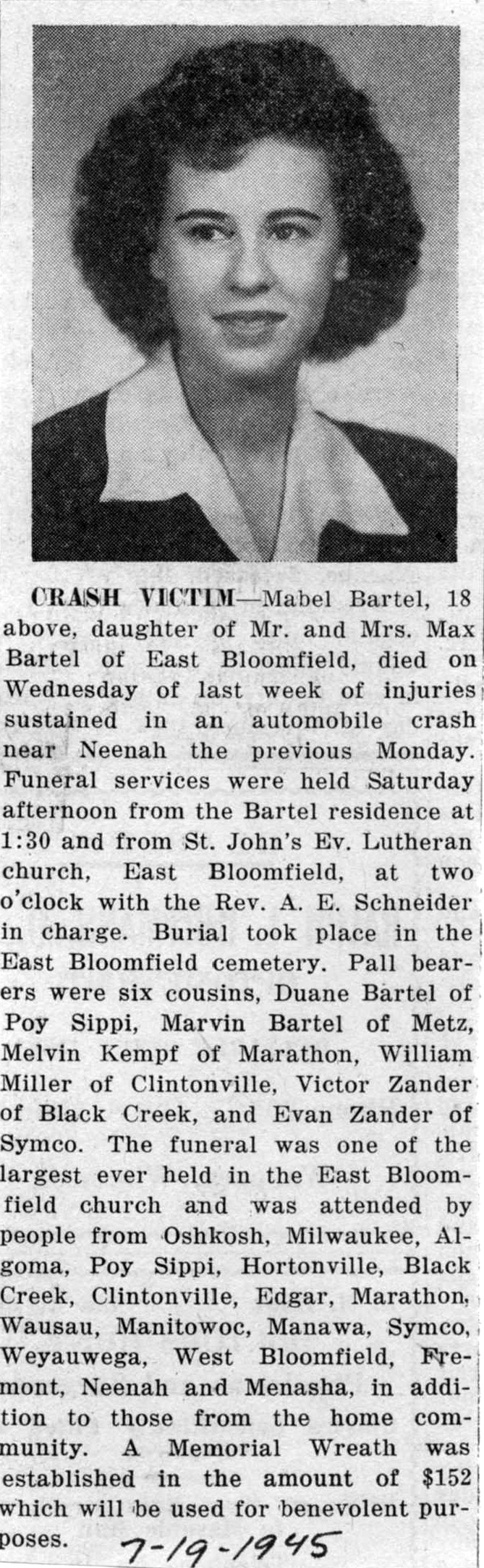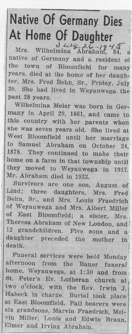 ![]() Newspaper unknown July 26, 1945 Wilhelmina Abraham |